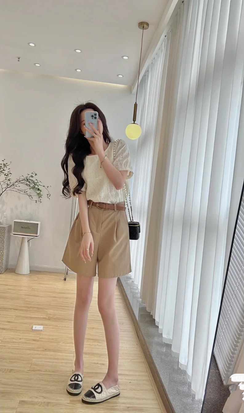 千吉娜Chigina 五分短裤 带皮带 专柜款 时尚百搭 A字版型 极简风