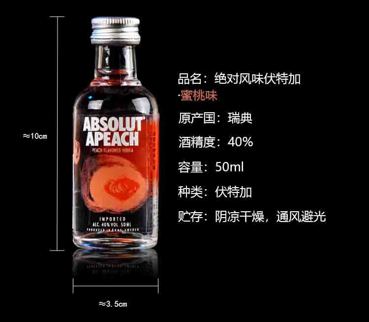 网红绝对果味小酒版50ml(柠檬/蜜桃/苹果梨味)