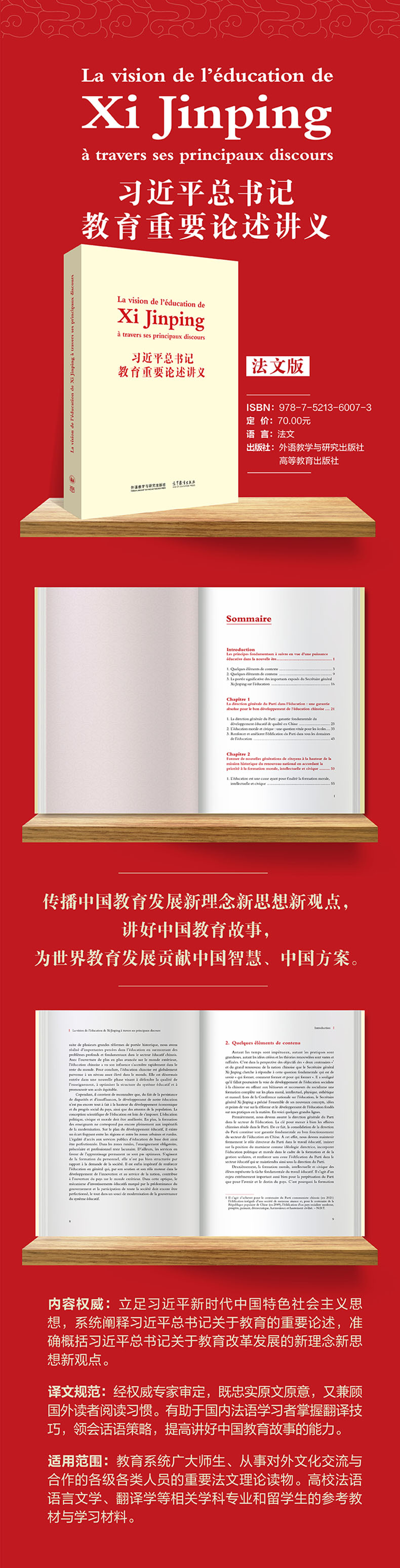 法文版经权威专家审定,既忠于原文原意,力求表述准确、语言规范,又符合海外读者的认知特点和阅读习惯,有助于海外读者了解新时代中国教育改革发展,也是国内学习者的重要法文理论读物和学习材料。