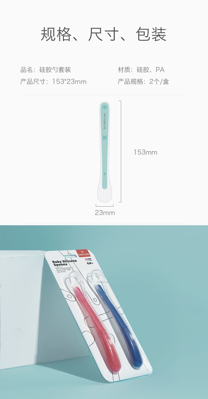 baby care儿童硅胶软勺2件套装