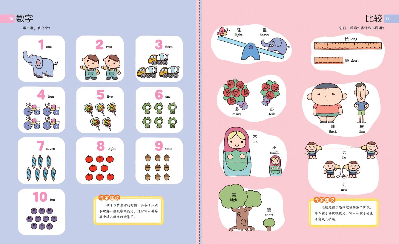 启蒙认知+场景故事+单词学习+音频朗读,比同类书形象更丰富,更贴近孩子生活,不光可以认知启蒙,还能学习中英文单词,跟读、听写一本都搞定。