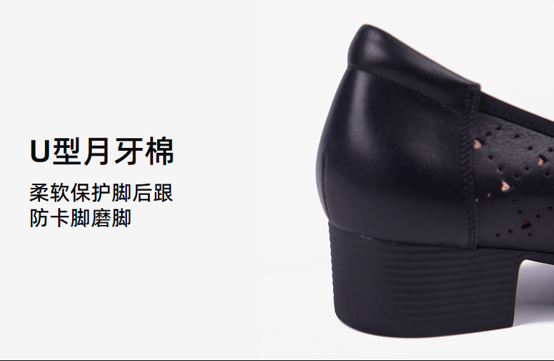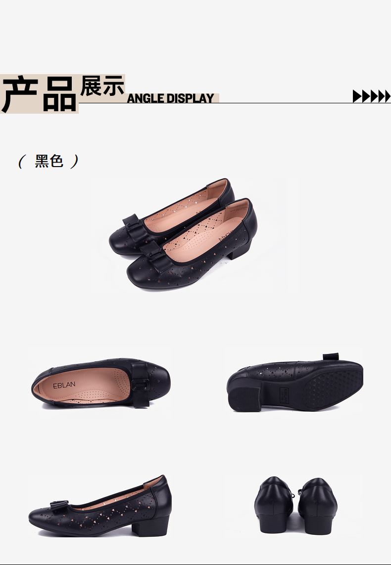 千百度通勤乐福鞋春季黑色小皮鞋中跟一脚蹬真皮正装单鞋A24132908