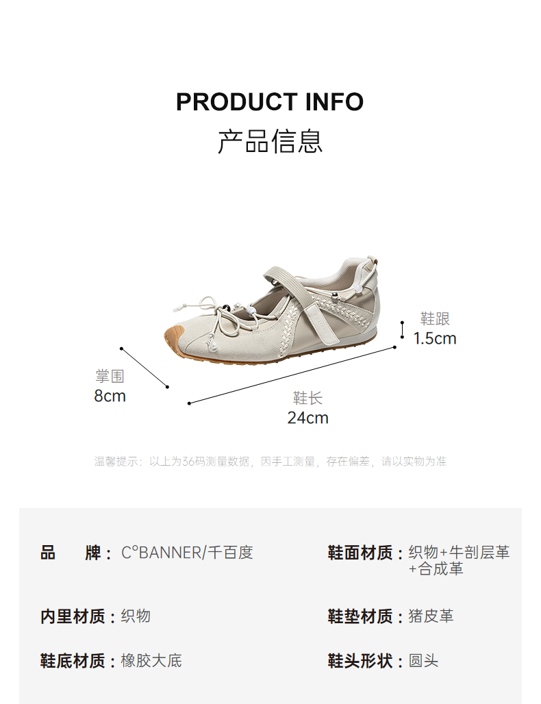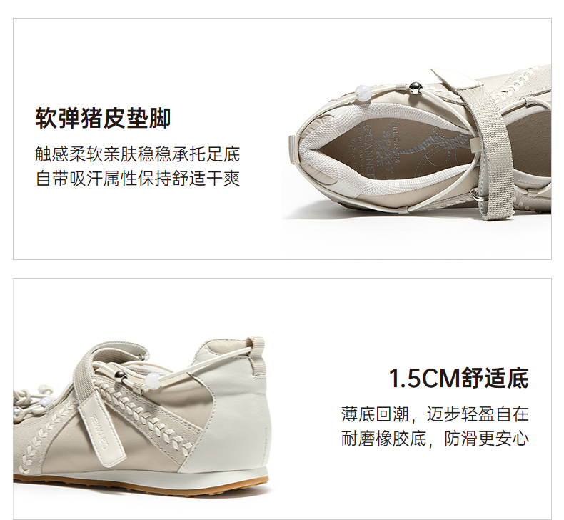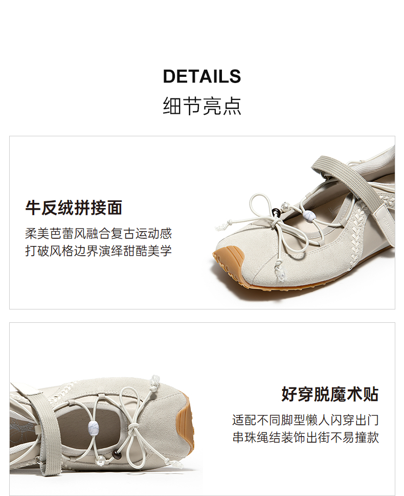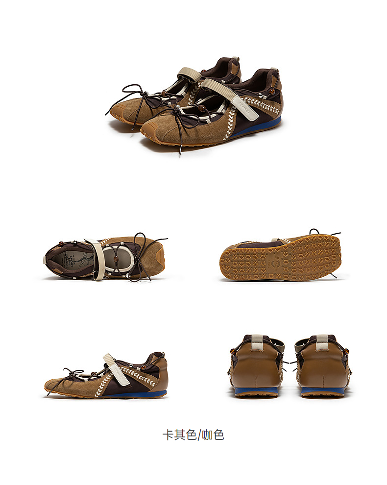 千百度薄底运动玛丽珍鞋女2026春季新款蝴蝶结舒适魔术贴休闲单鞋A26160831