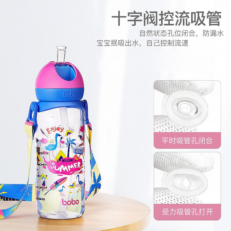 (6.22妈妈班 裸瓶)bobo夏日炫彩儿童水杯宝宝吸管杯学饮杯水杯400ml