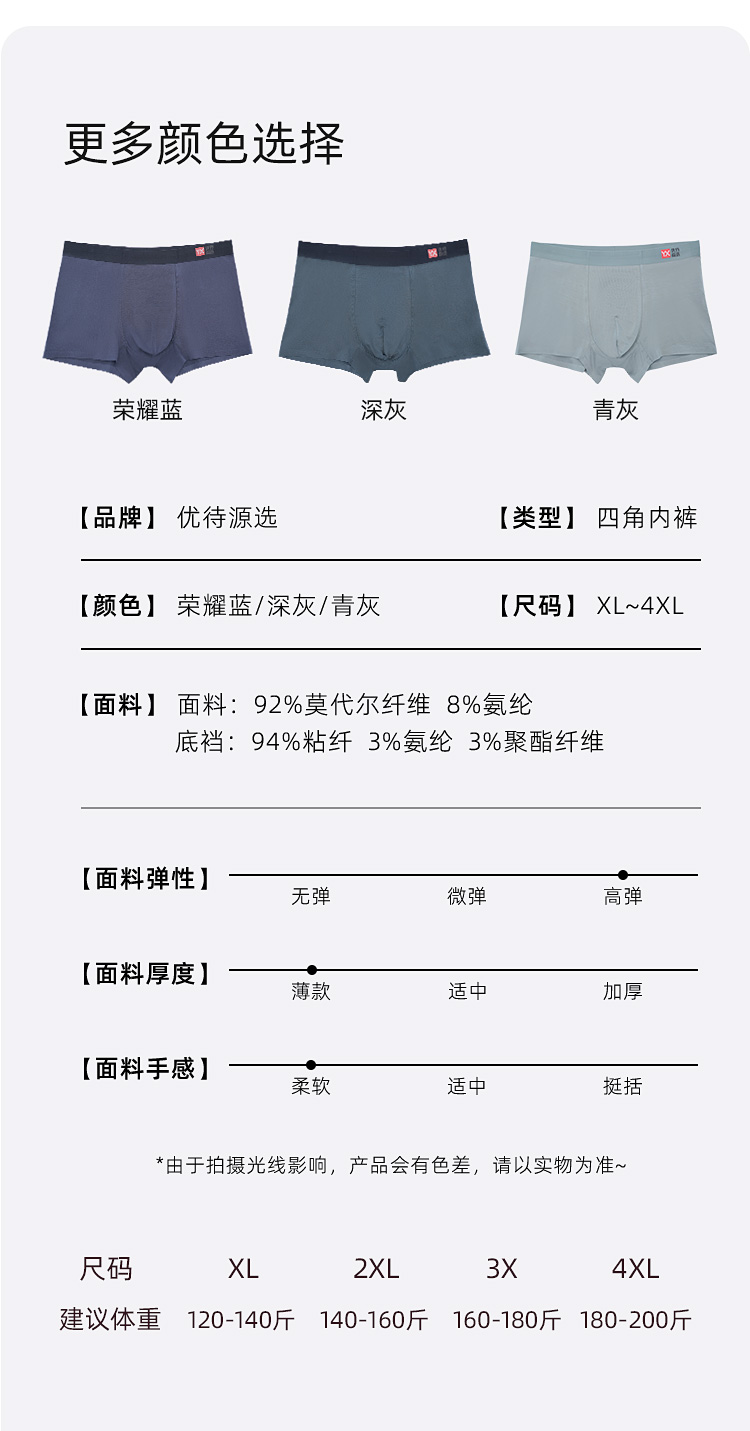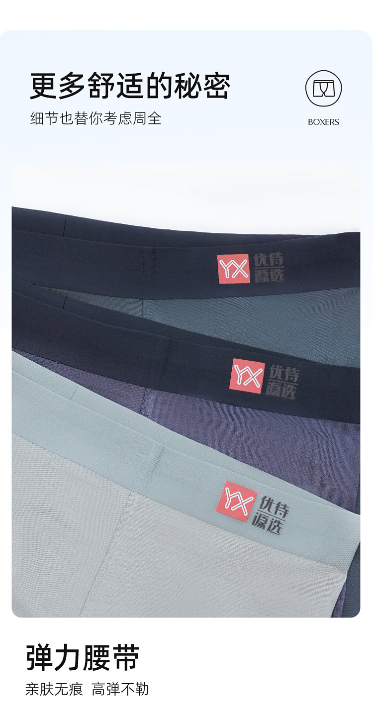 【59元3条,数量拍3】优待源选男士莫代尔棉内裤柔软透气平角裤青年男四角裤运动大码短裤头裤衩YXNM002