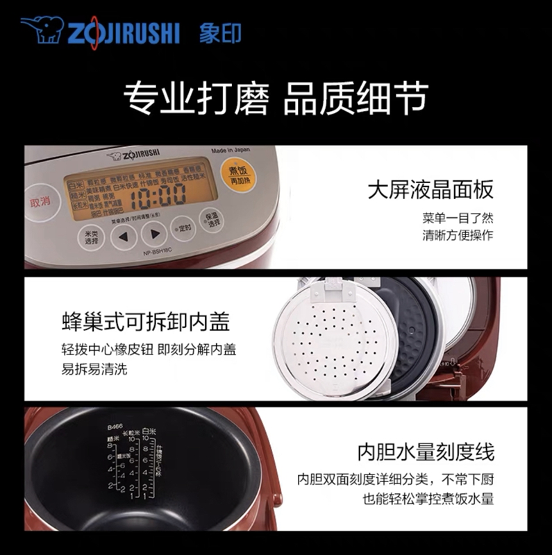 象印ZOJIRUSHI 羽釜7段压力电饭煲 NP- BSH10C-RA