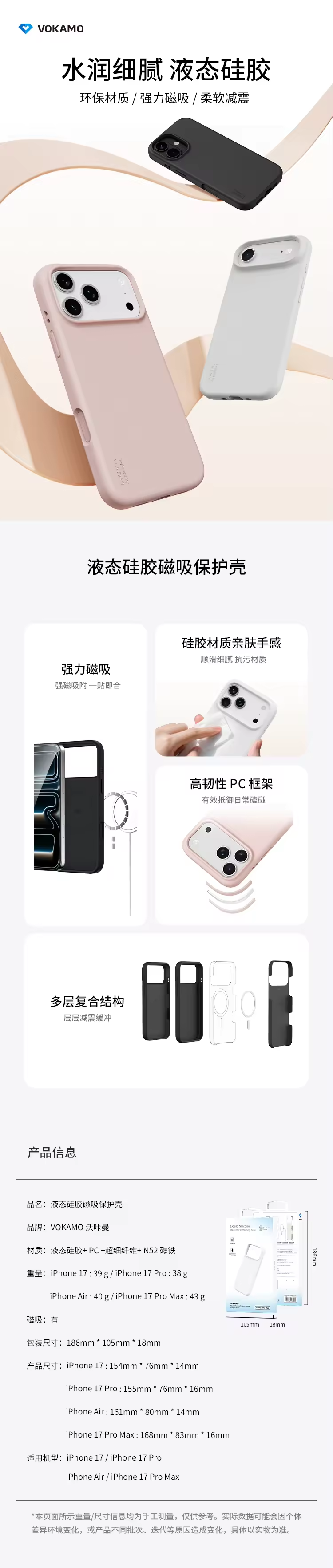 VOKAMO沃咔曼 iPhone 系列 液态硅胶磁吸保护壳-17 系列