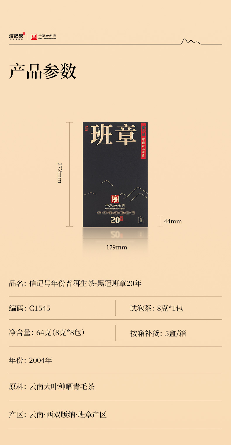 八马信记号 | 信记号年份普洱生茶·黑冠班章20年 C1545