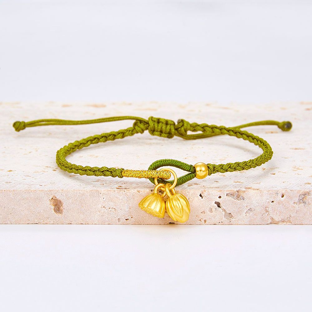 【限时7.5折】【定价黄金】足金 #两世欢 #小红书 3D硬金两世欢绿绳调节成品手串(AA3DSC00108)(预售产品下单后不退款不退货不换货不补差价)