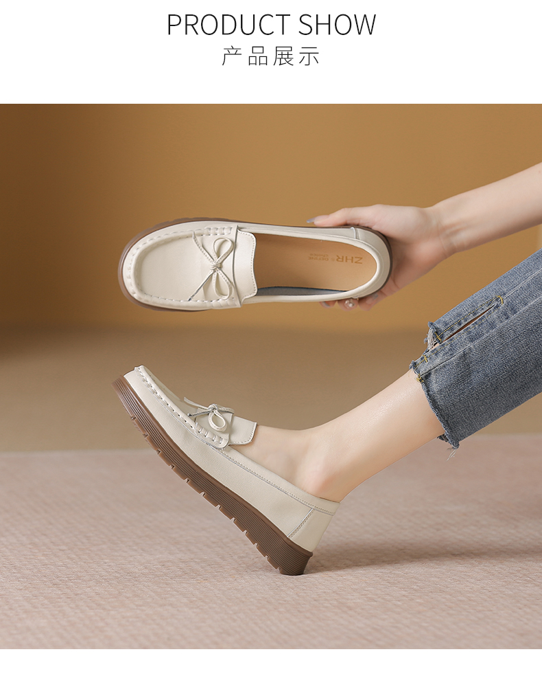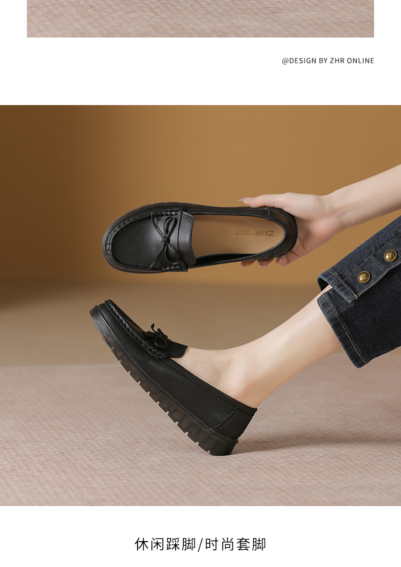 ZHR休闲小白鞋女厚底鞋豆豆鞋英伦风小皮鞋乐福鞋女鞋软底不累脚