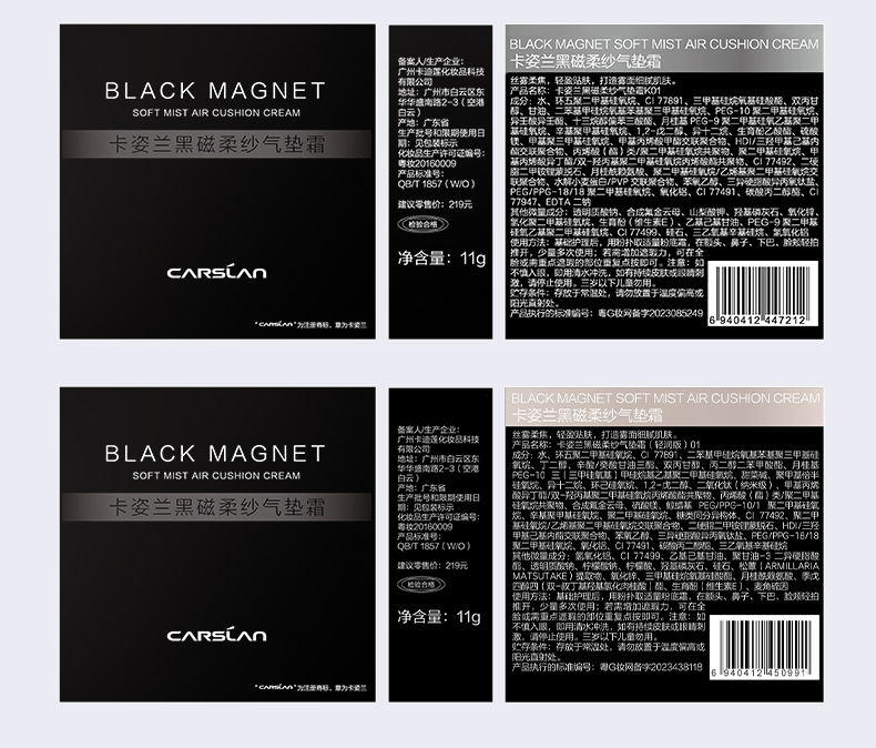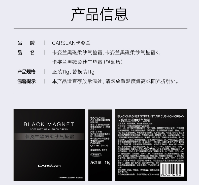 【卡姿兰Carslan】卡姿兰黑磁气垫送同款替换芯*1