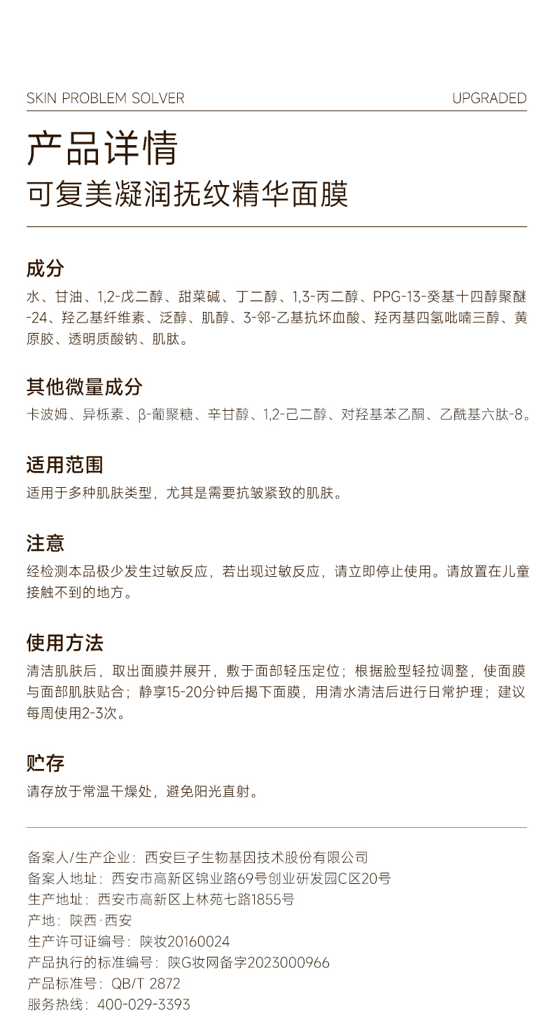 可复美小金膜凝润抚纹精华面膜补水保湿弹润紧致淡纹