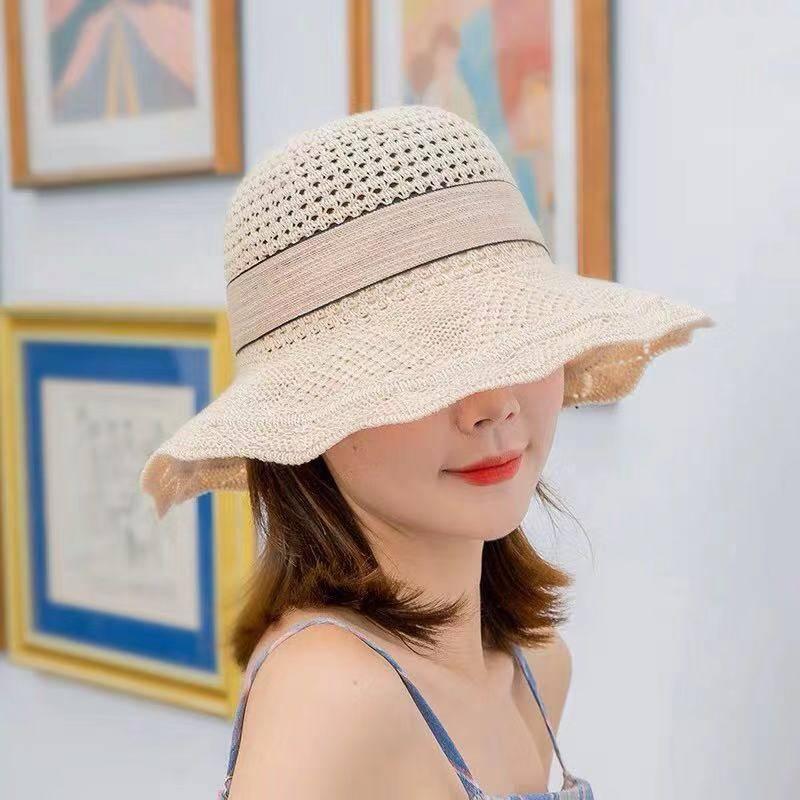 新款棉麻可水洗折叠帽子夏女士遮阳韩版防晒太阳帽大檐沙滩凉帽盆帽女
