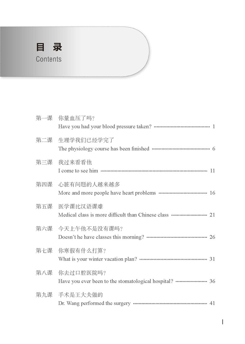 《我是医学生:基础医学汉语》是一套在“中文 + 医学”理念指导下,依据《新汉语水平考试大纲》《国际中文教育中文水平等级标准》《医学汉语水平考试(MCT)大纲》编写的综合性医学专用汉语教材。教材重在提高学习者在日常生活交际和医院日常交际场景中运用汉语的能力,同时也注重提升学习者的文化素养和医生职业素质。 Under the guidance of “Chinese + medicine” principle, I Am a Medical Student: Preclinical Medicine Chinese is a series of integrated medical Chinese textbooks, compiled based on Chinese Proficiency Test Syllabus, Chinese Proficiency Grading Standards for International Chinese Language Education and Medical Chinese Test (MCT) Syllabus. The teaching materials focus on improving learners’ ability to use Chinese for communication in daily life and in the hospital scene, and also focus on improving learners’ cultural literacy and professional quality of doctors.