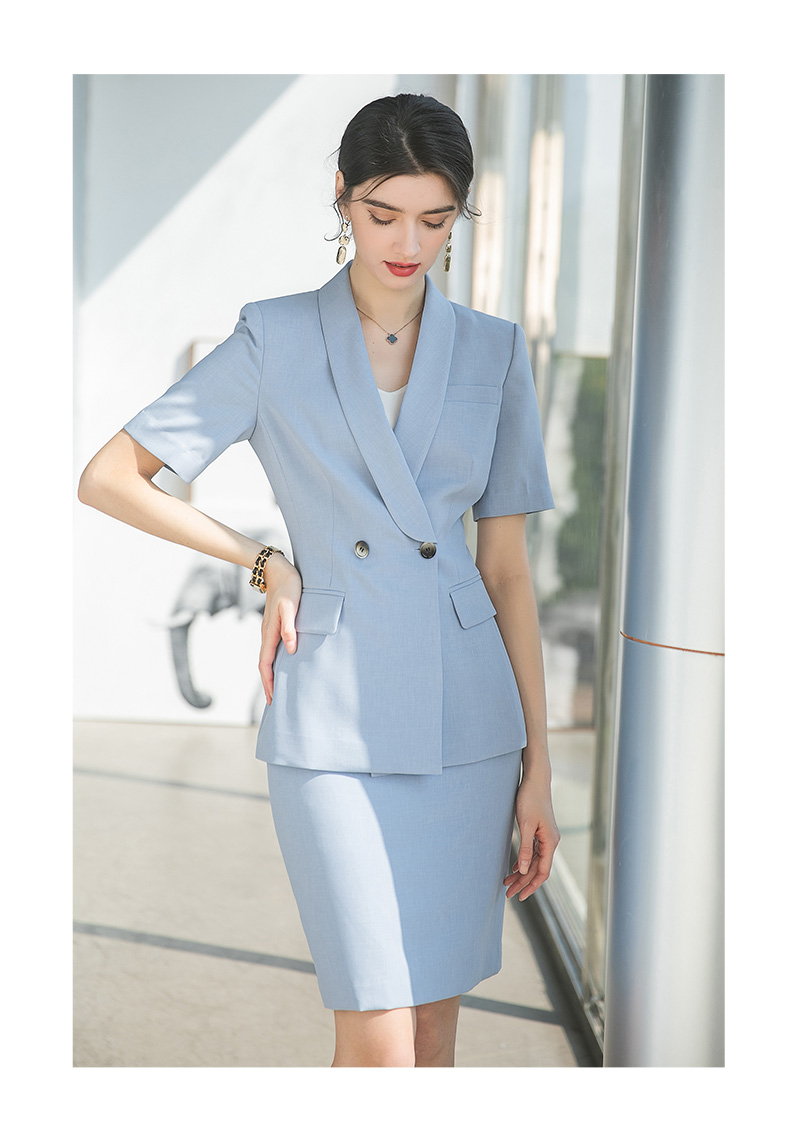 IWY/气质蓝色职业半裙女士高级感西装套裙夏季薄款气质工作服商务正装CS1548