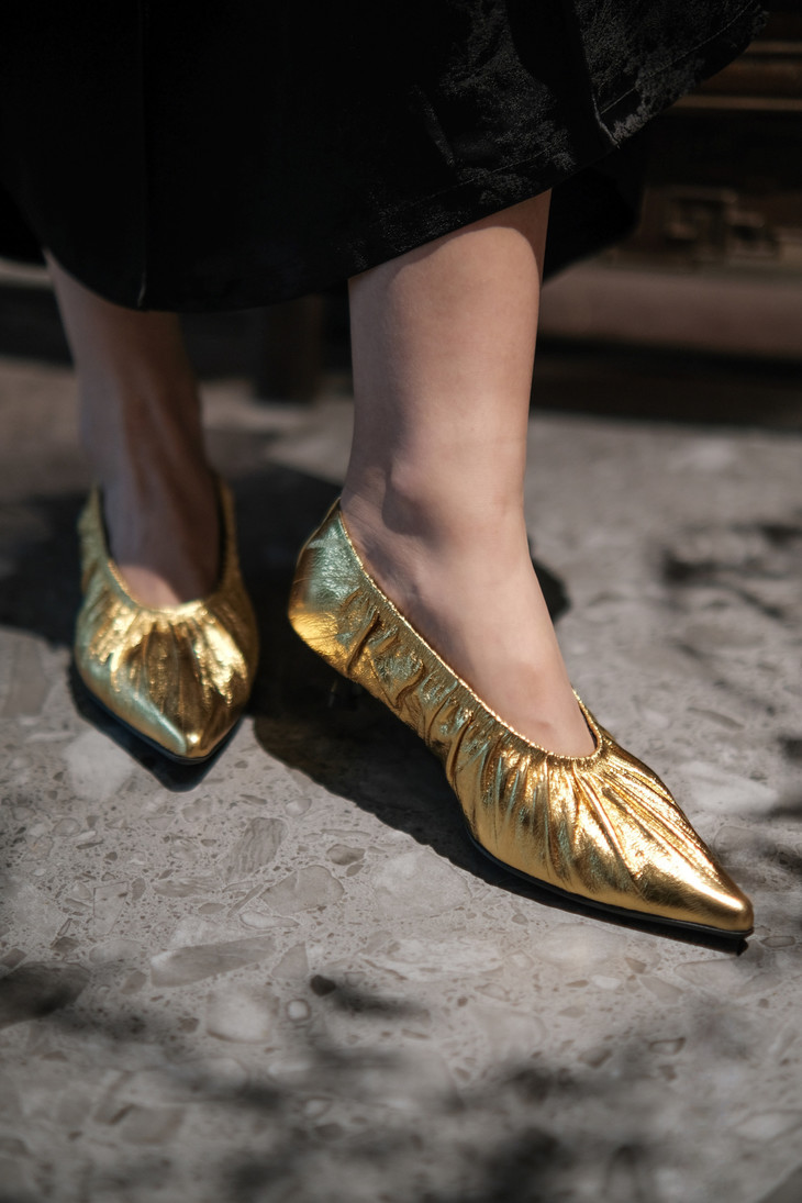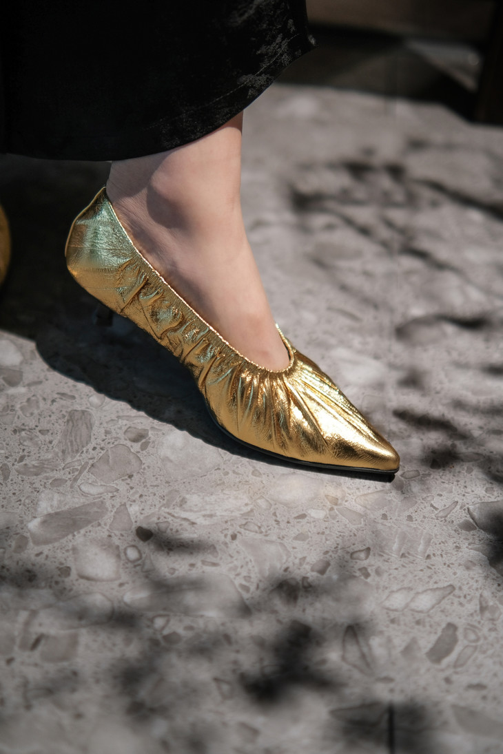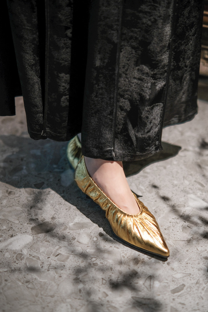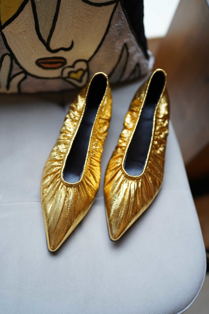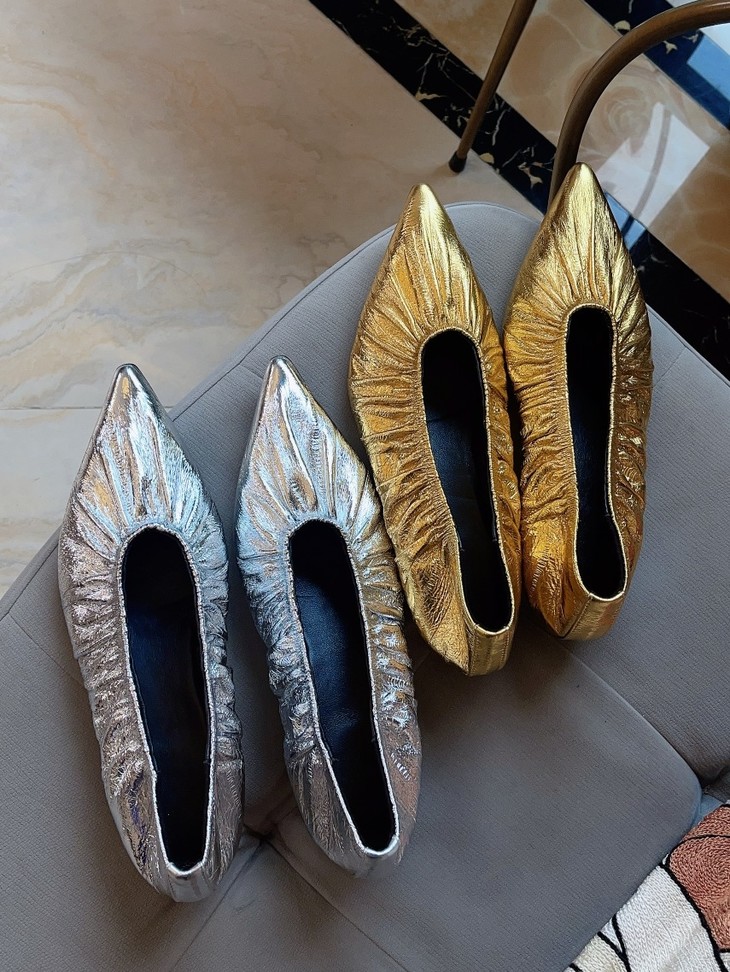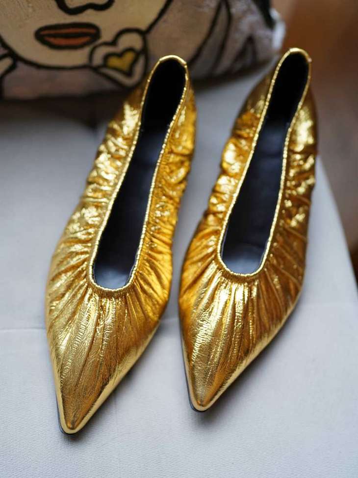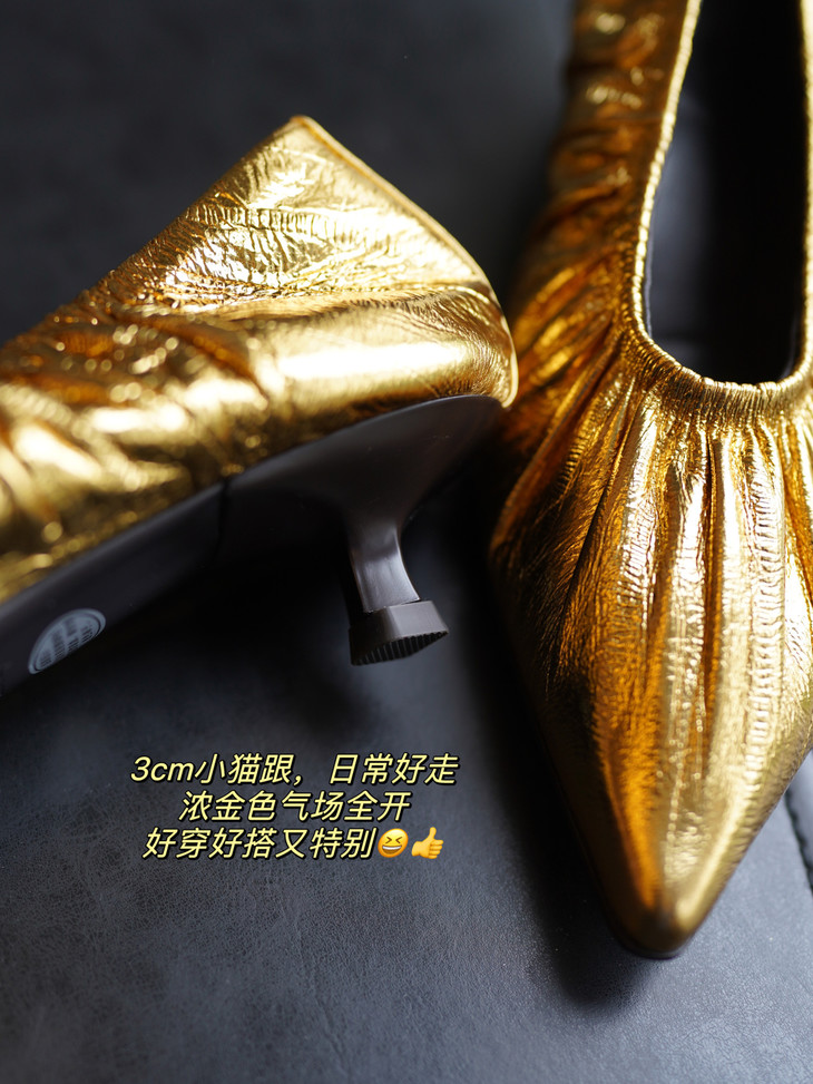 浓金色贵气吸睛又时髦,🈶自信张扬的绚丽美感,鞋型秀气包脚,我这种大肉脚穿上也不会觉得臃肿,真的太美了!