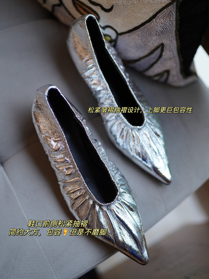 鞋子包口一圈的抽褶设计都是🈶弹力的,穿着不会勒脚,真正做到了轻盈无束缚~