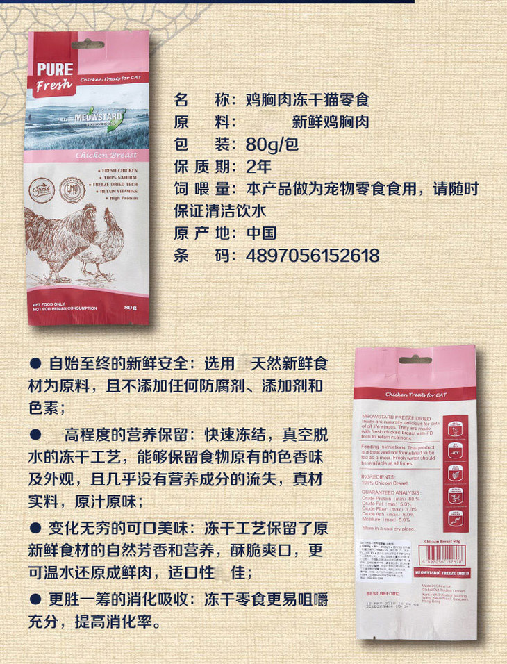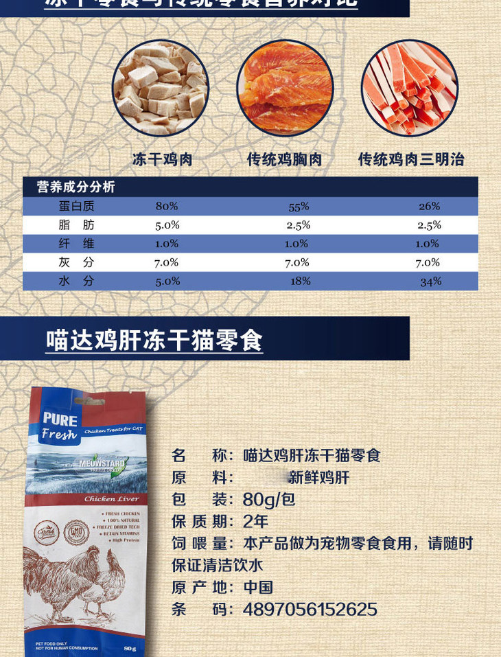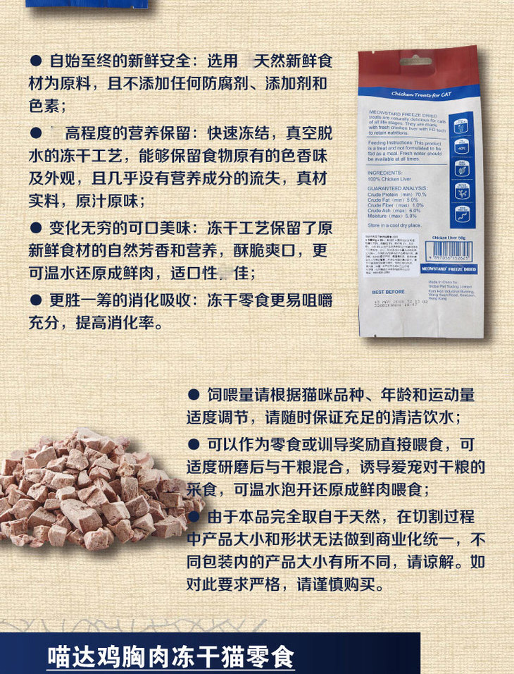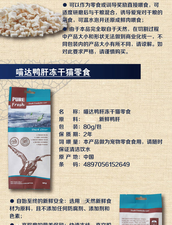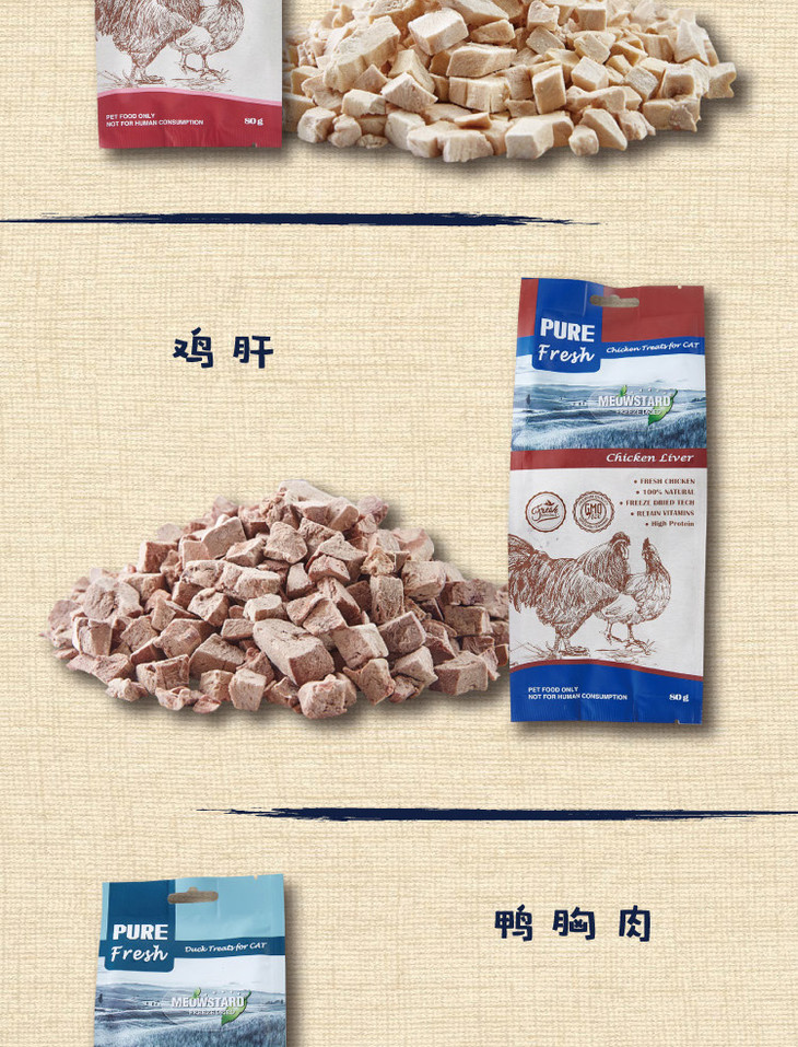 喵达 冻干 70g 6种口味 三文鱼 鳕鱼 鸡肉 鸡肝 鸭肉 鸭肝