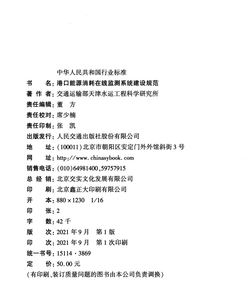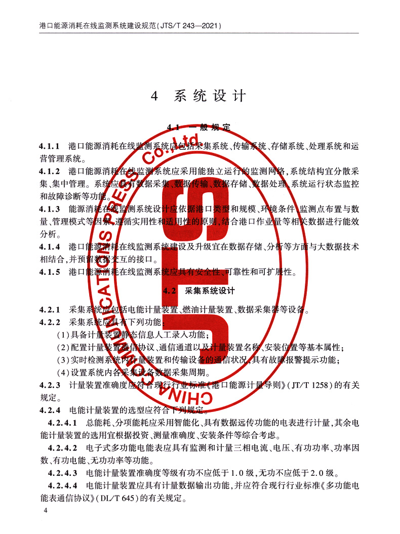 港口能源消耗在线监测系统建设规范 JTS/T 243-2021