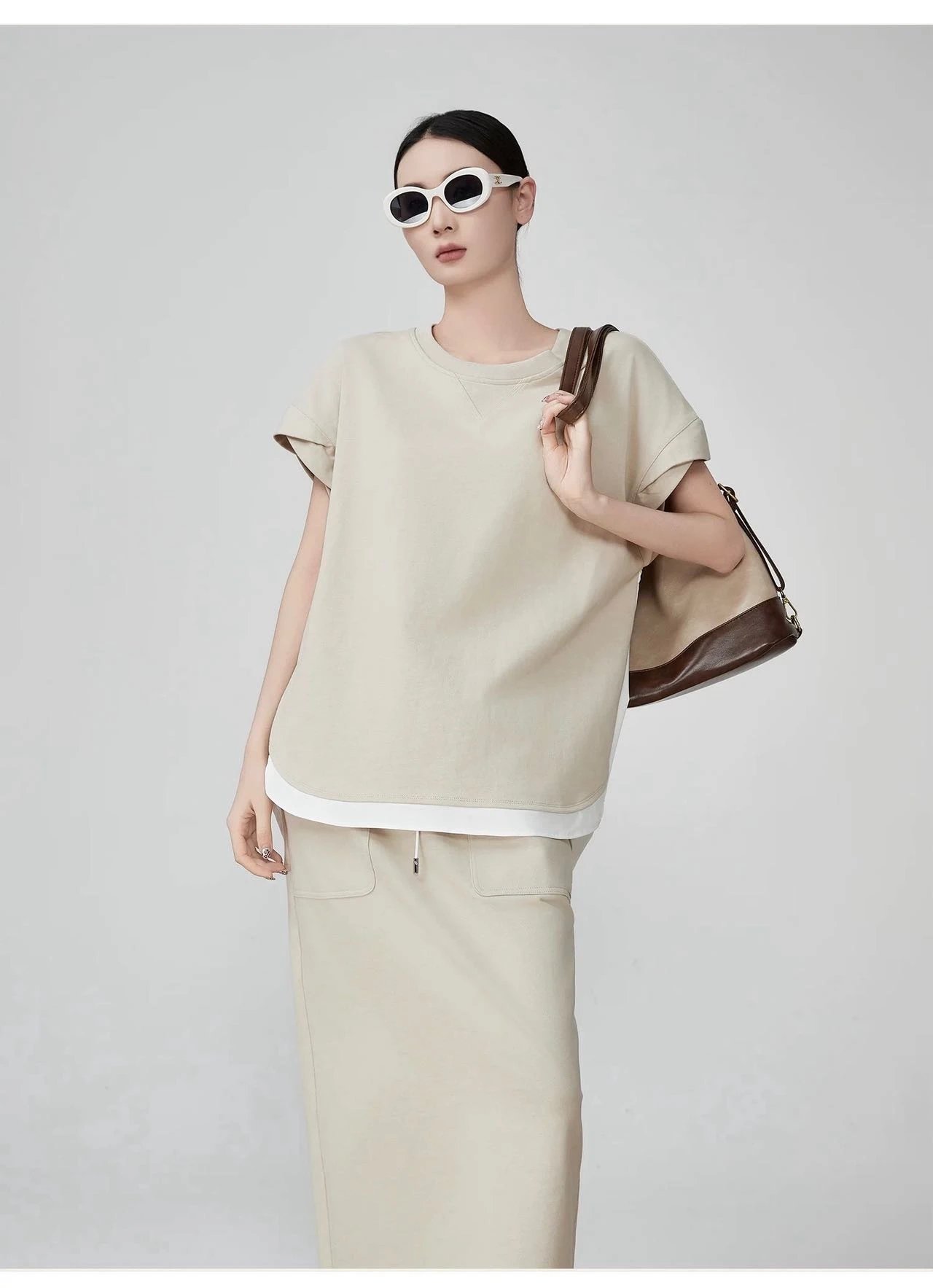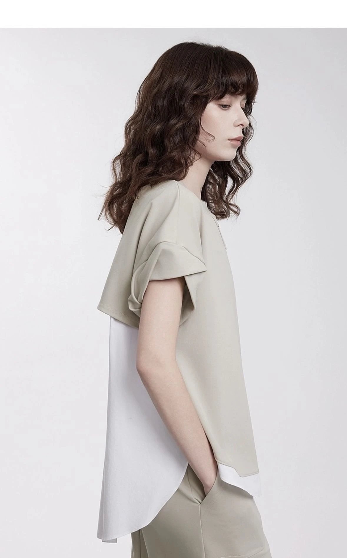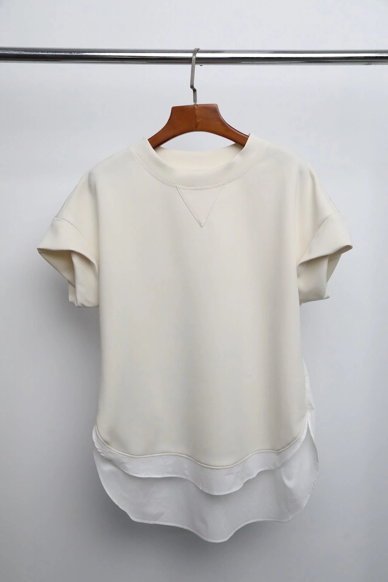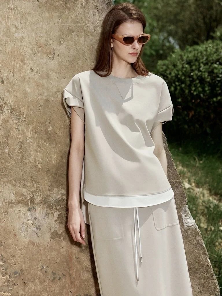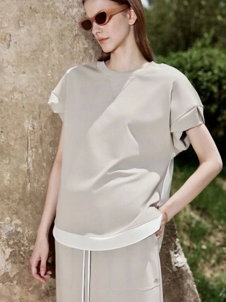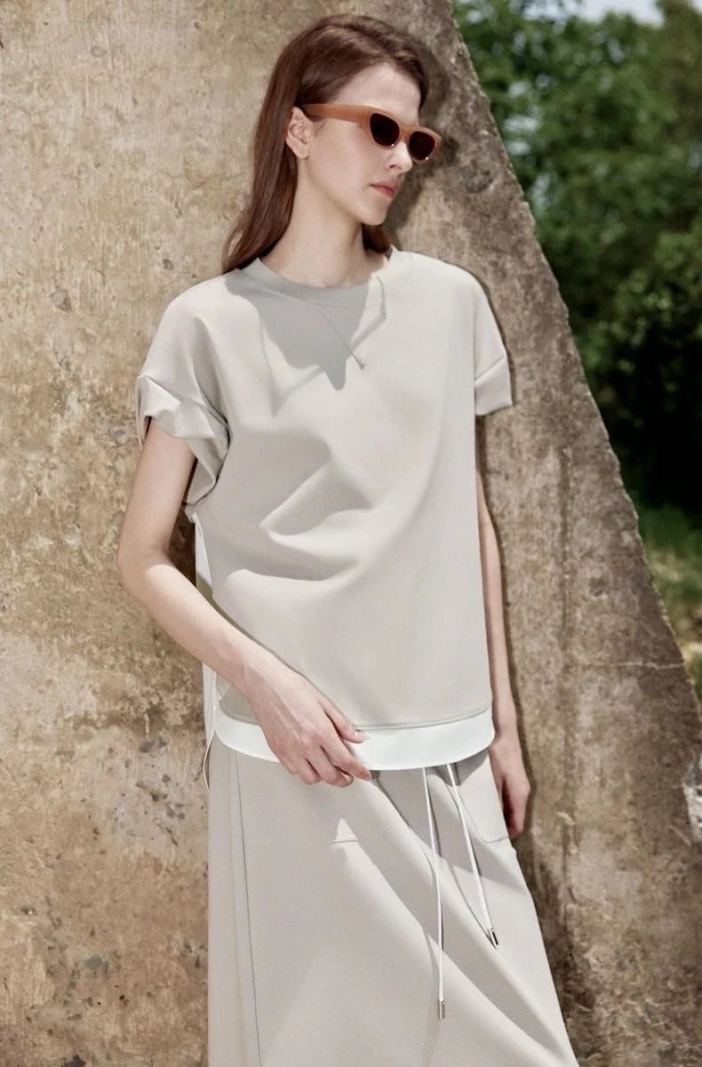【商品品名】慵懒淡人专属~空气层拼接短袖