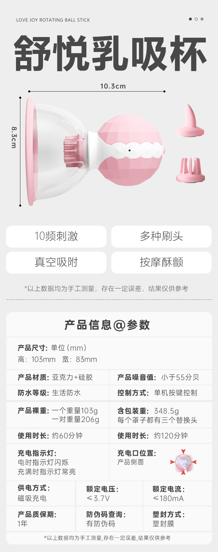 谜姬 舒悦乳吸杯 乳房胸部 无线吸附 真空吮吸 三头替换乳头挑逗女用自慰器 夫妻调情另类玩具成人用品 舒悦乳吸杯 旋转吸款-粉