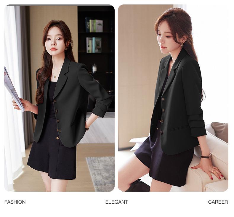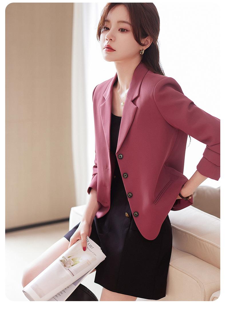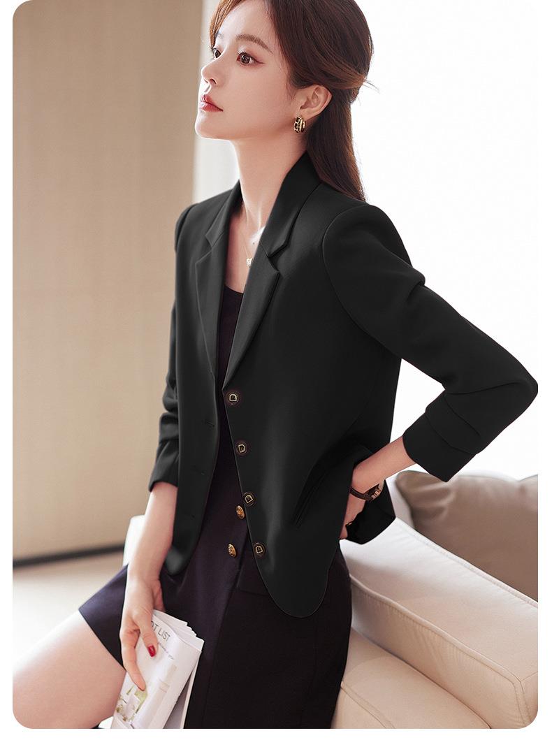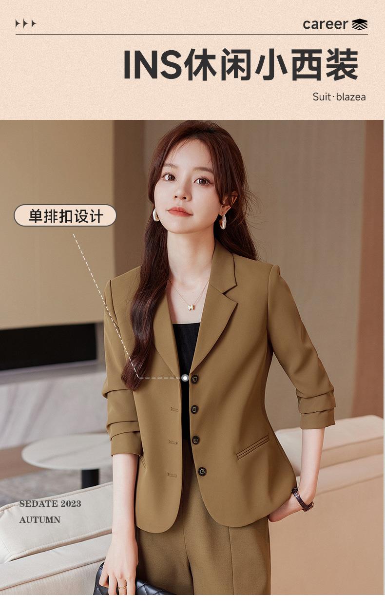 娜璐多 高级感短款西装外套女小个子2023秋季新款休闲设计感咖色西服上衣