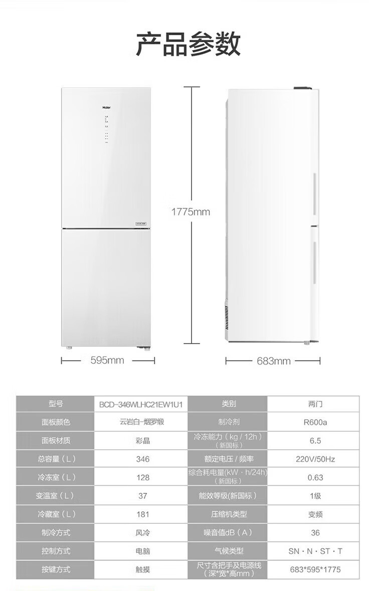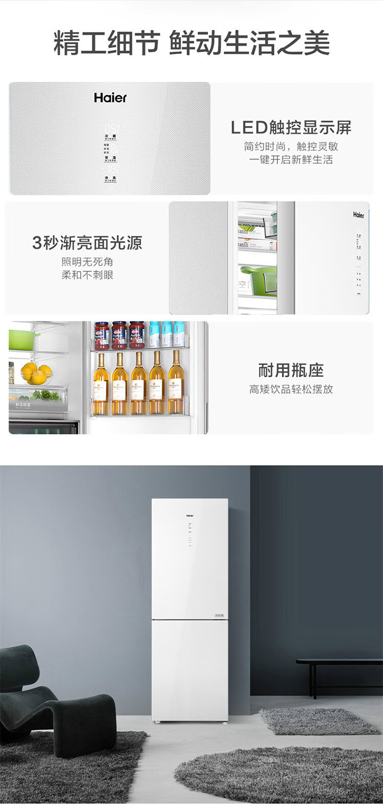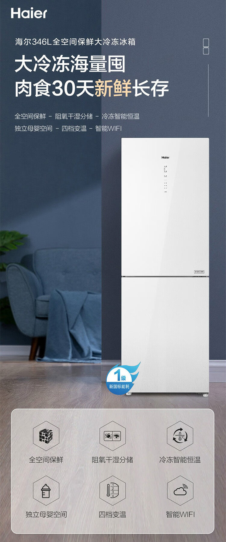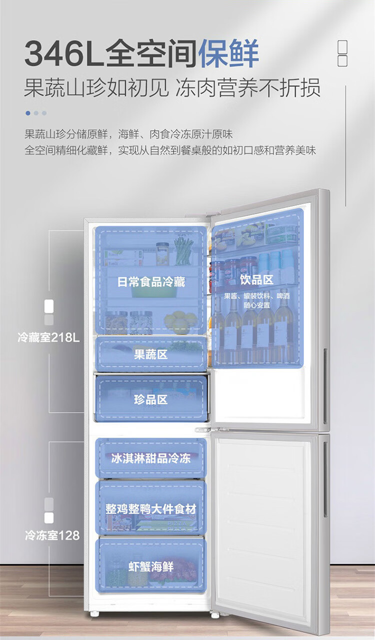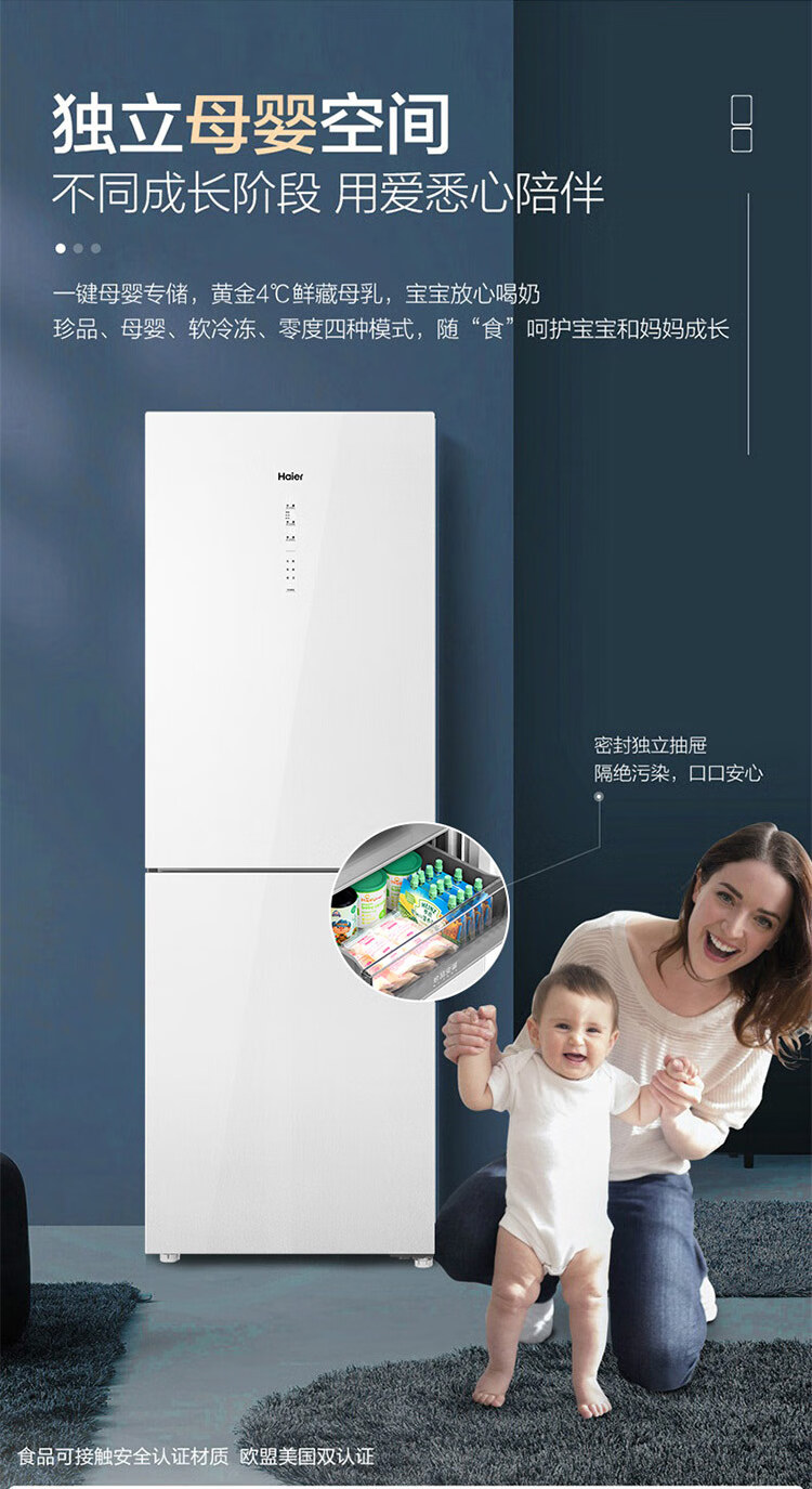 海尔(Haier)346升双门冰箱变频风冷无霜 全空间保鲜独立母婴 阻氧干湿分储