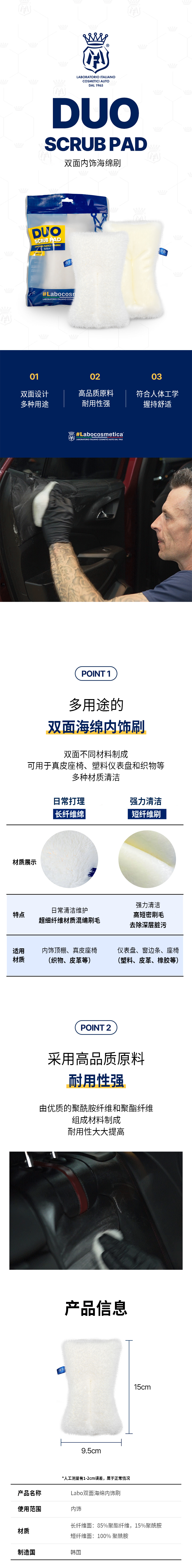 Labo 多多双效内饰清洁棉 双面内饰海绵刷