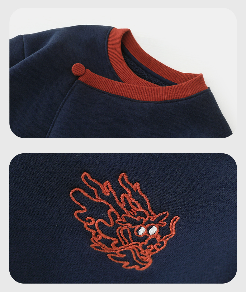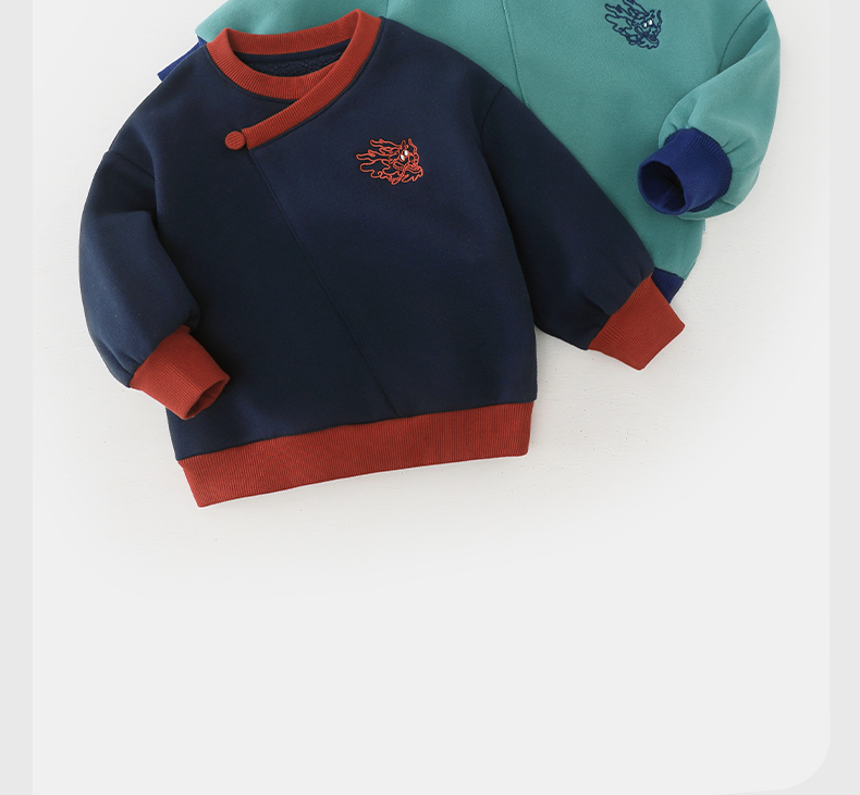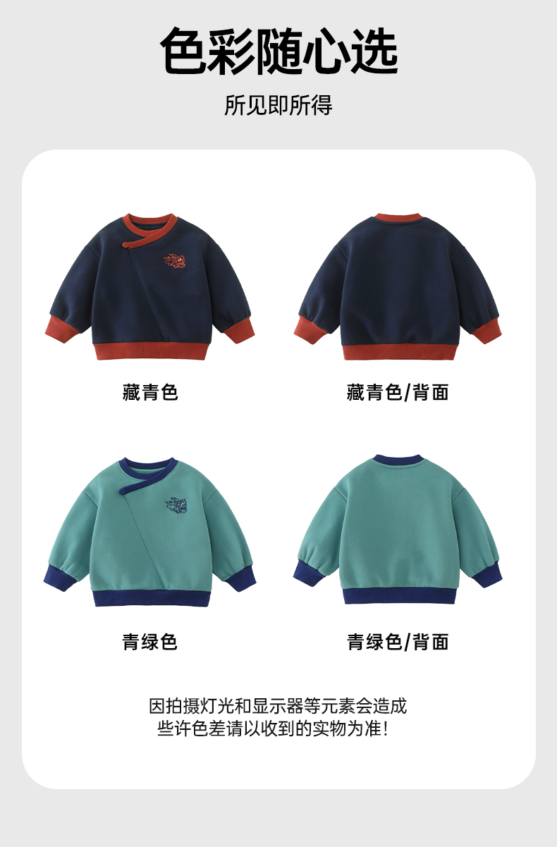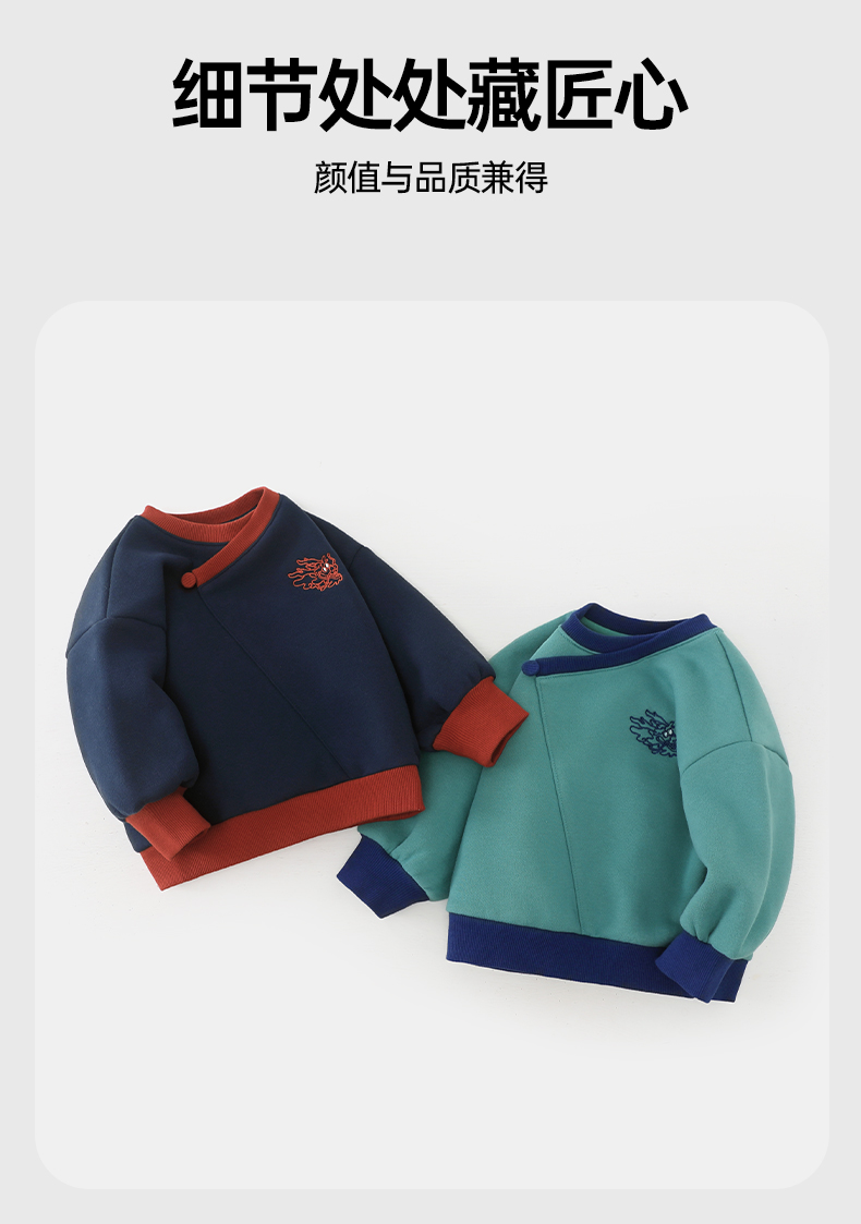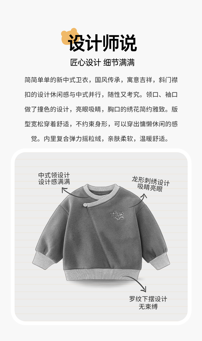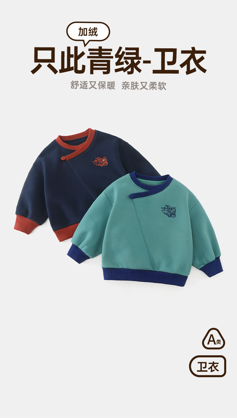 齐齐熊男童加绒卫衣儿童新中式上衣男宝宝