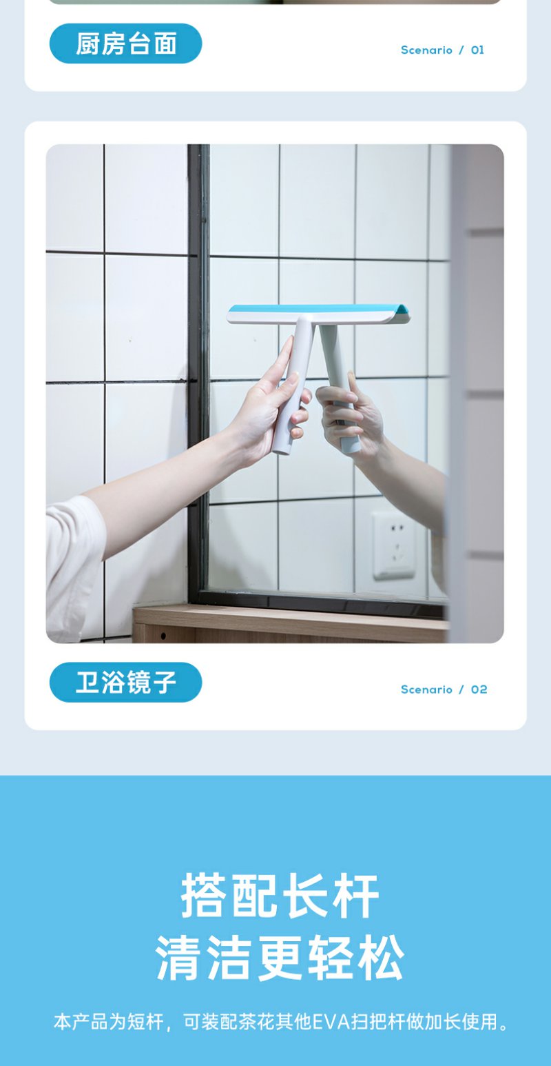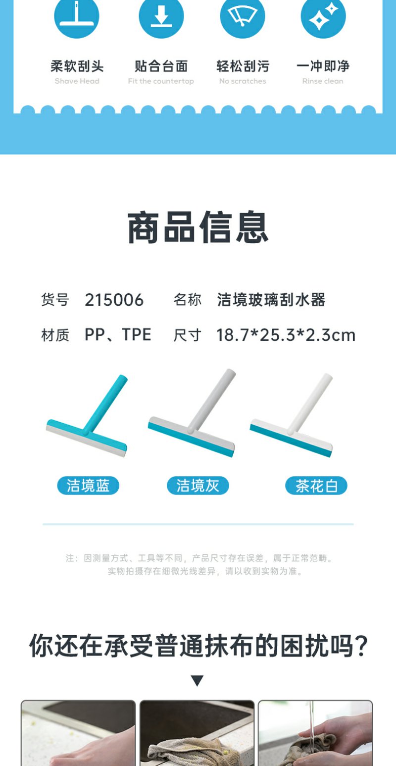 【茶花】短柄玻璃刮水器洗手间刮毛发