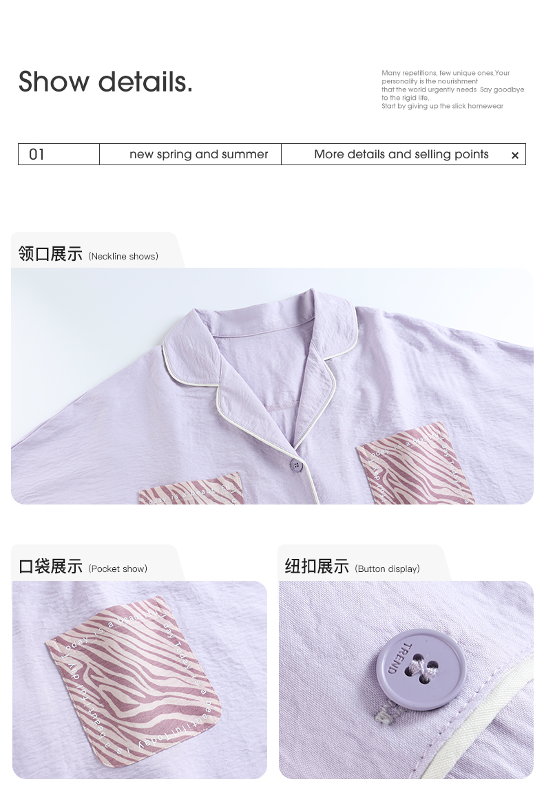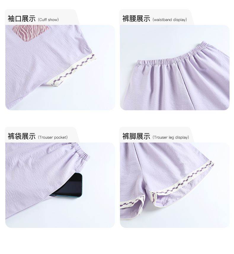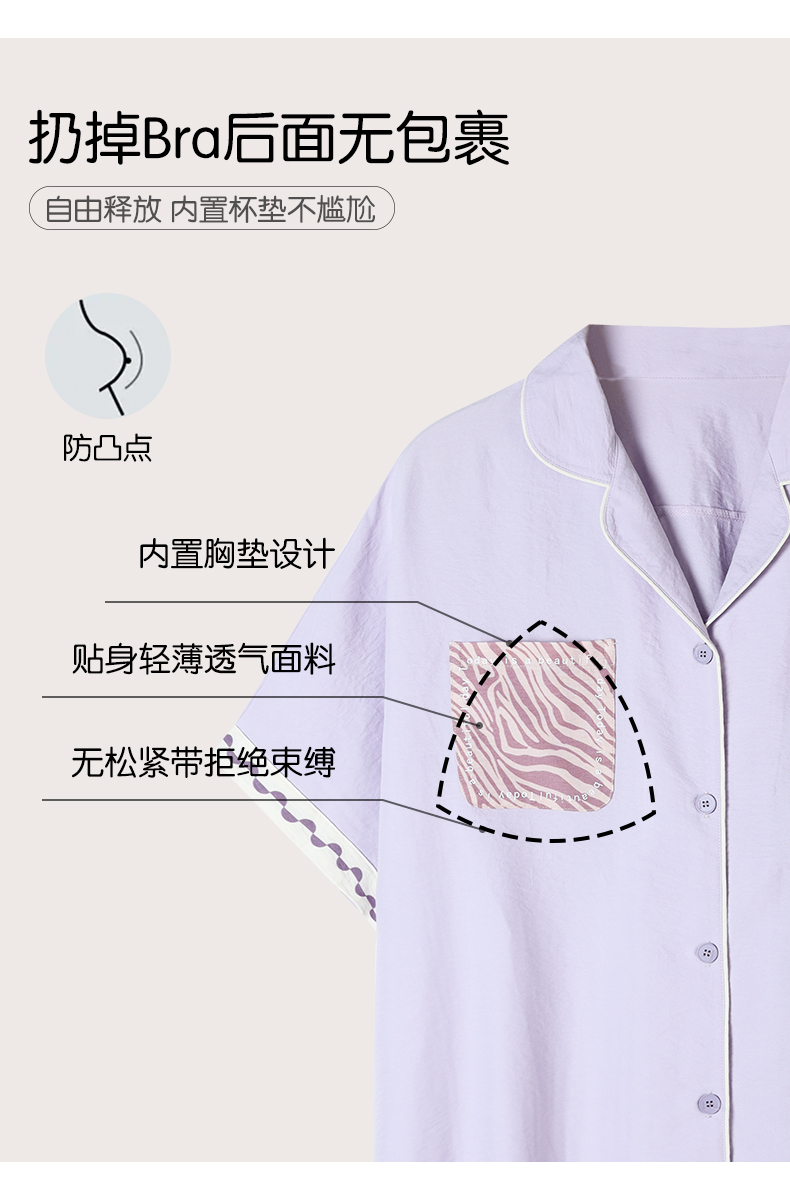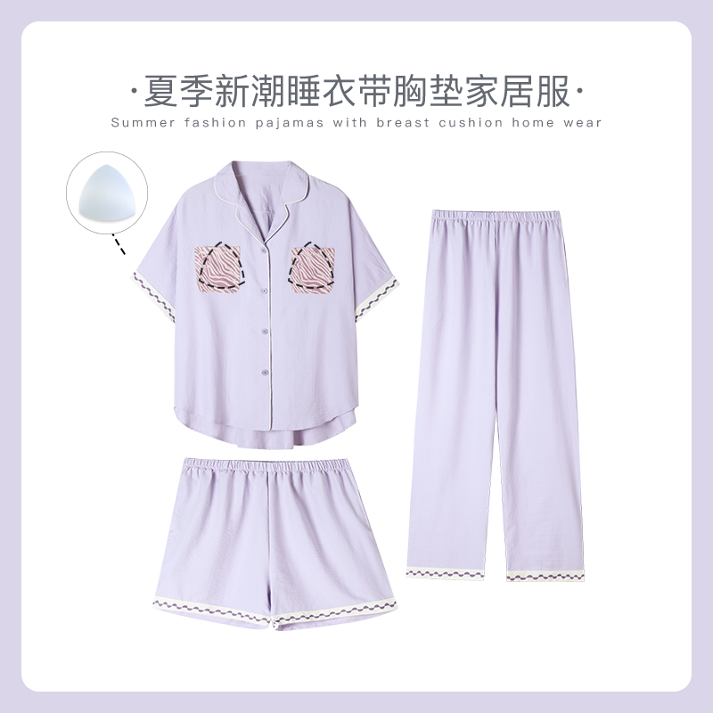 【可人儿&香芋紫】新款泡泡绵女士睡衣夏季短袖可外出家居服三件套