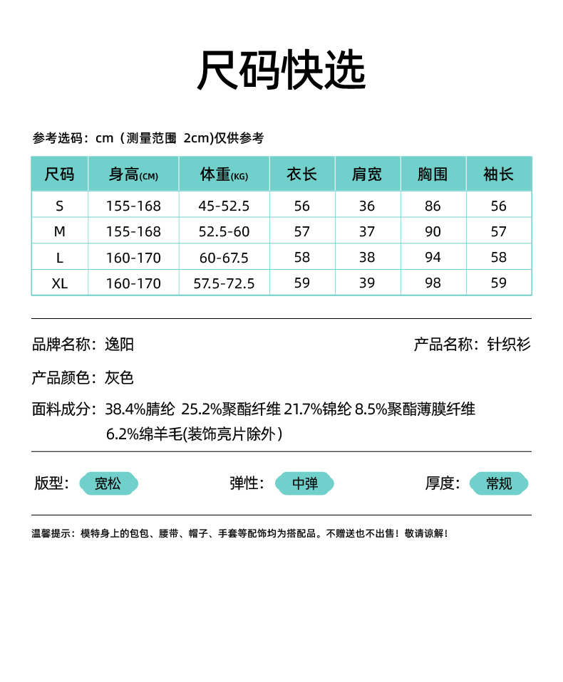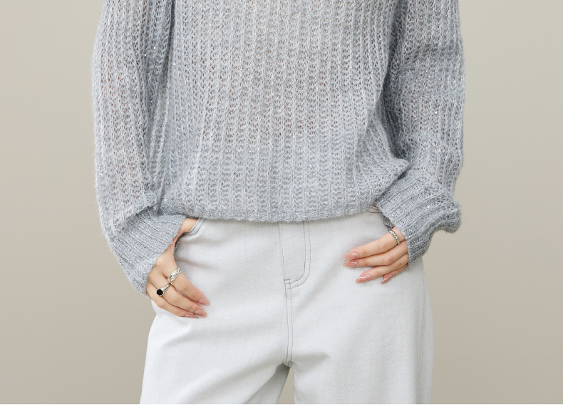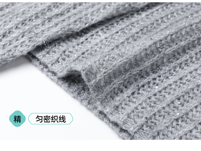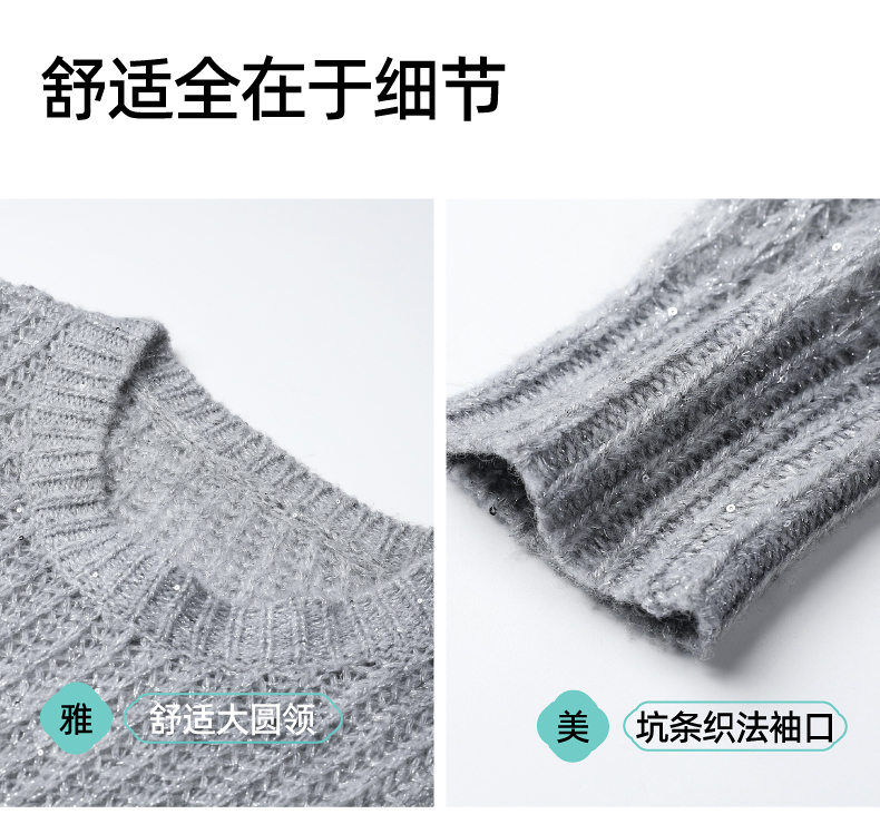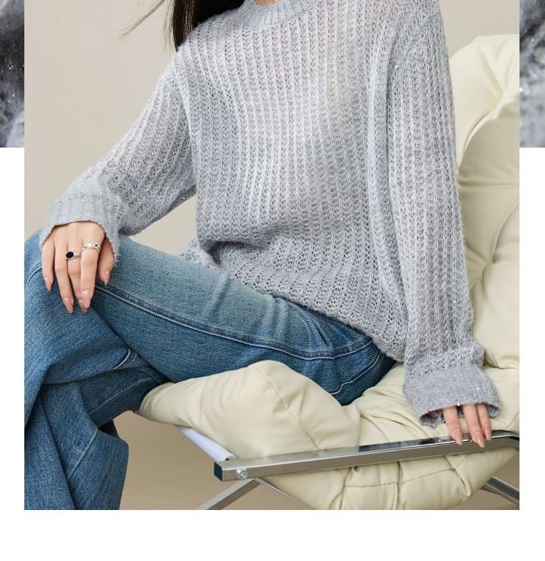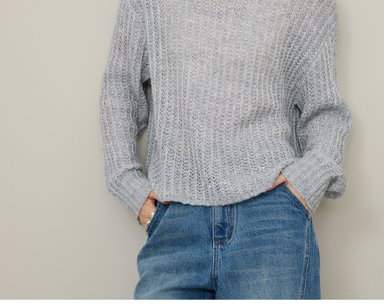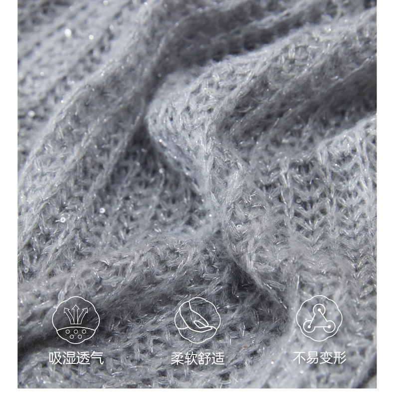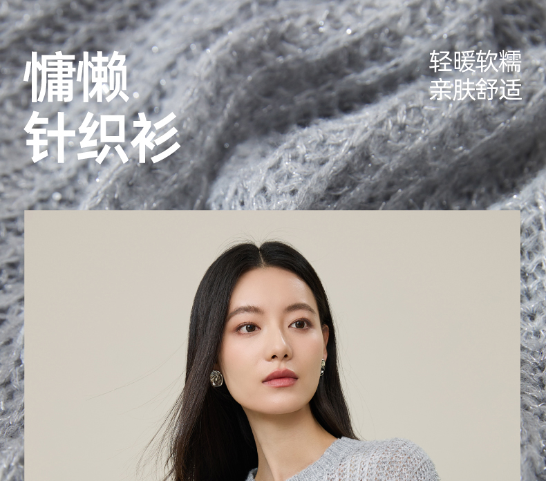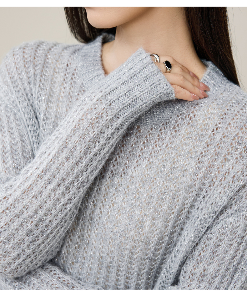 【慵懒针织衫】逸阳秋新品亮丝罩衫落肩长袖圆领气质上衣5293