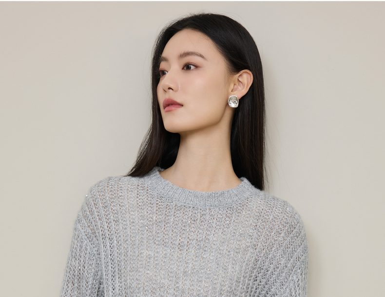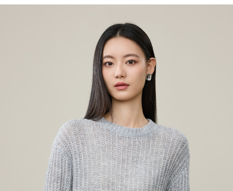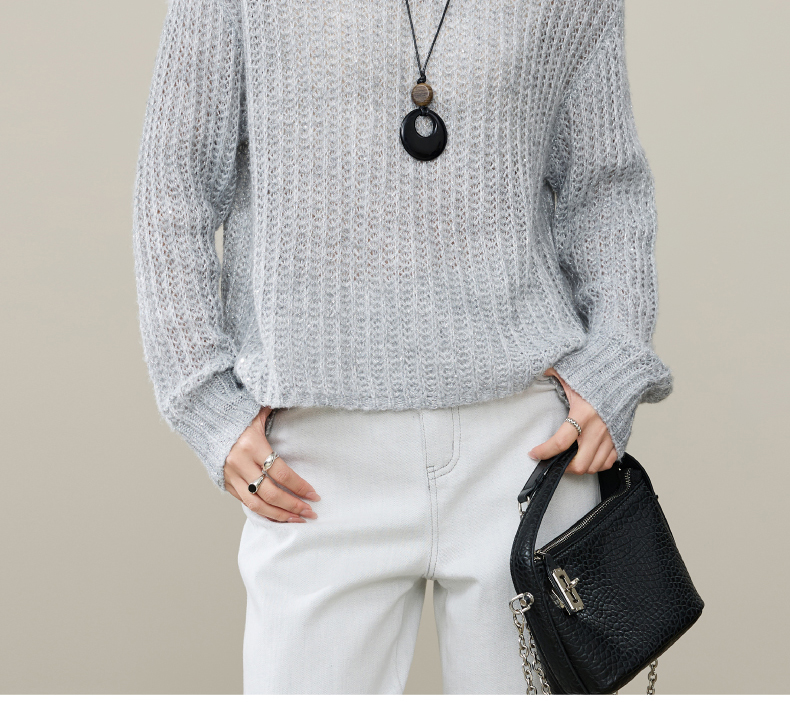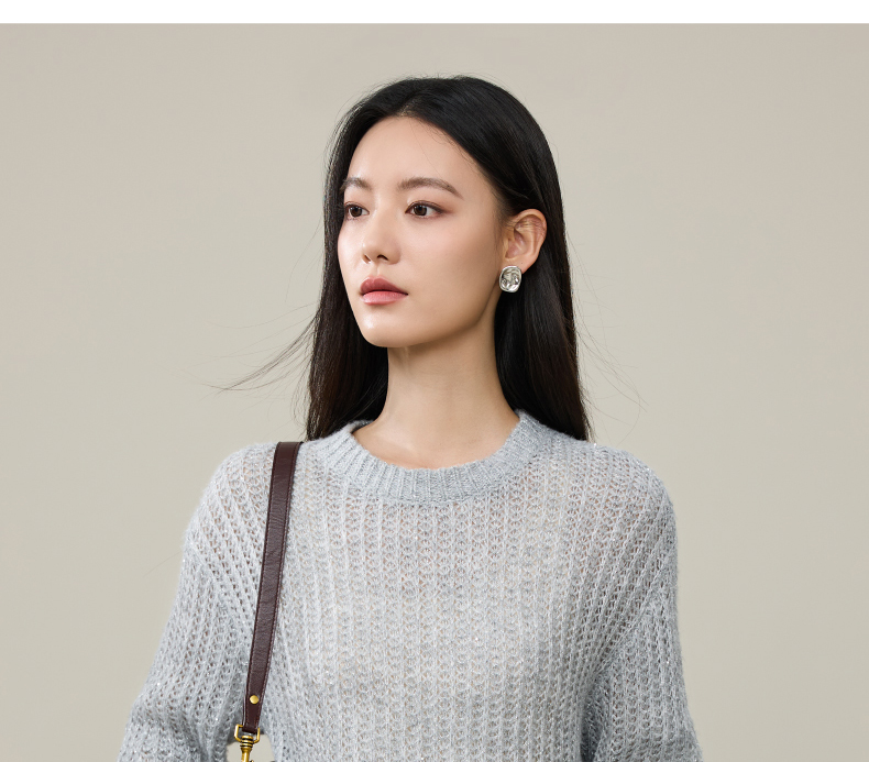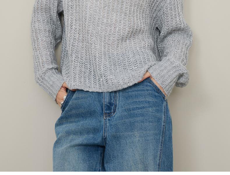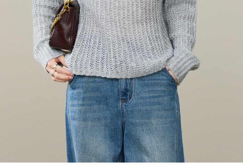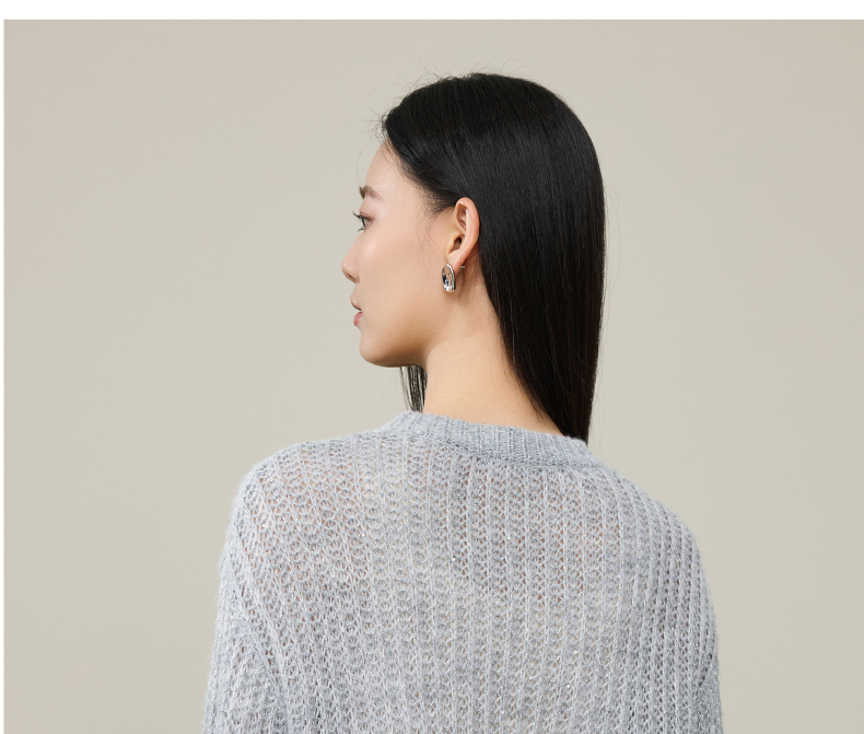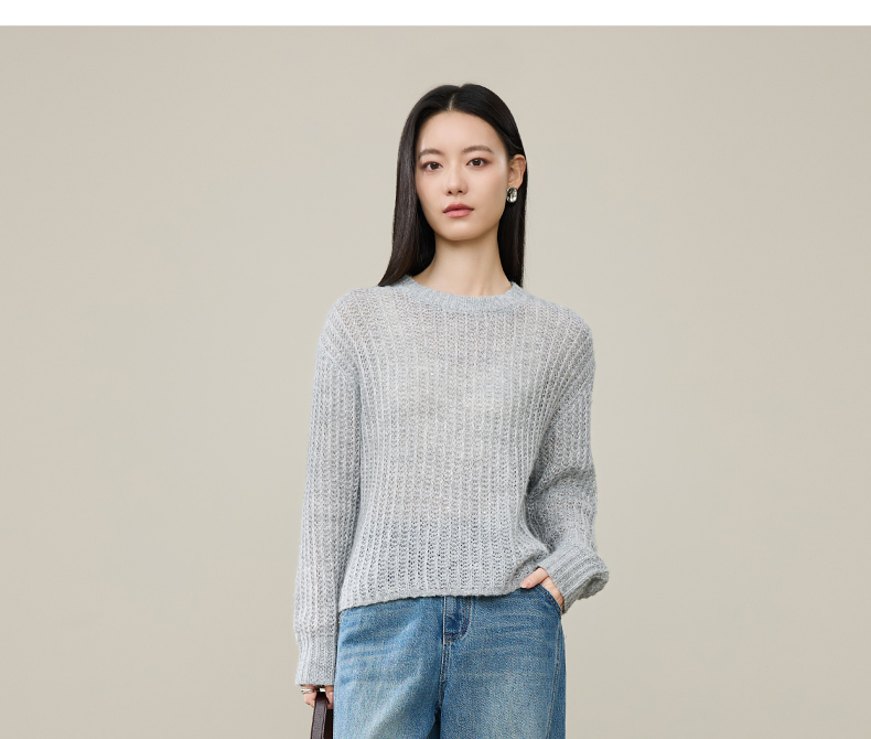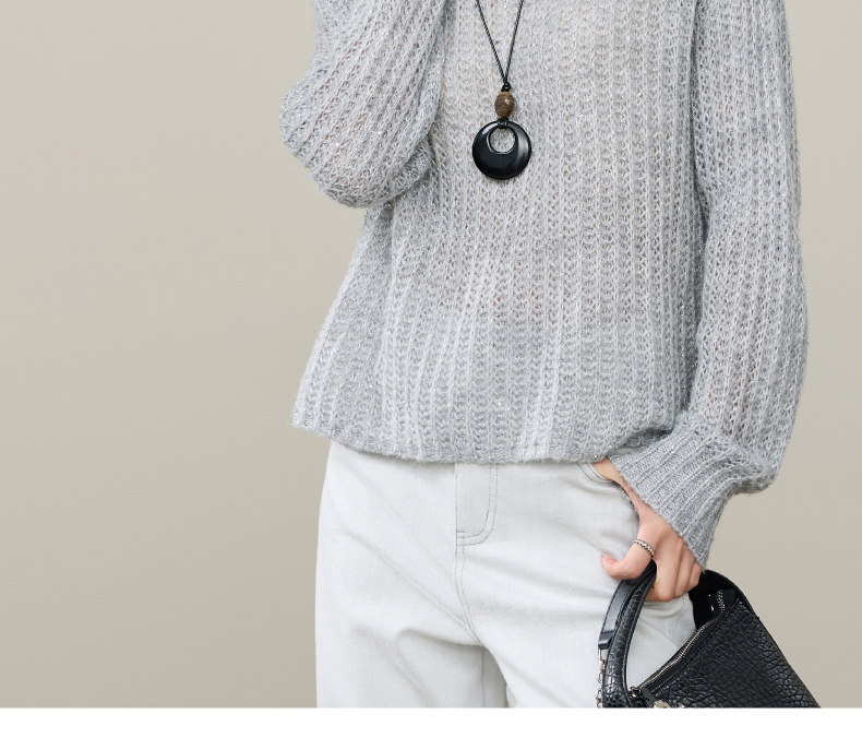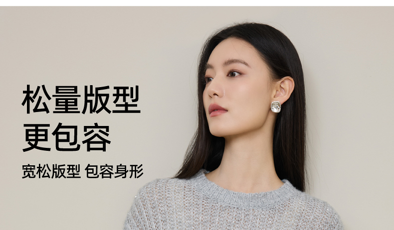 【慵懒针织衫】逸阳秋新品亮丝罩衫落肩长袖圆领气质上衣5293