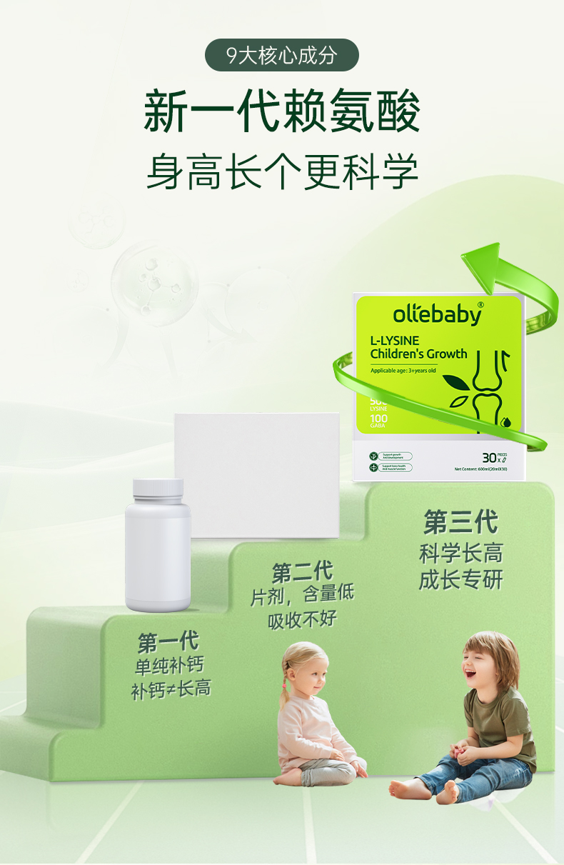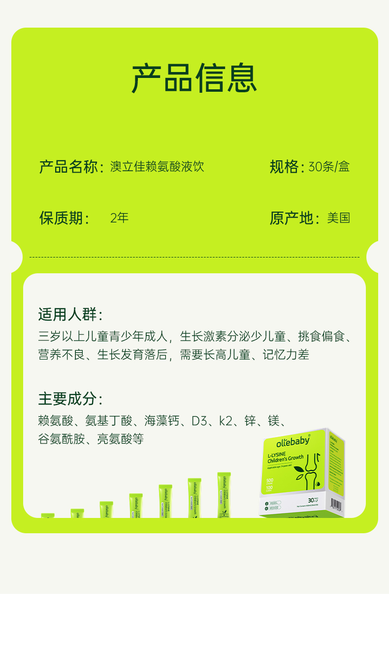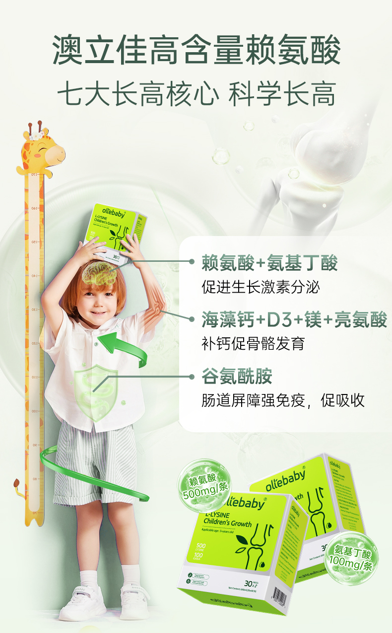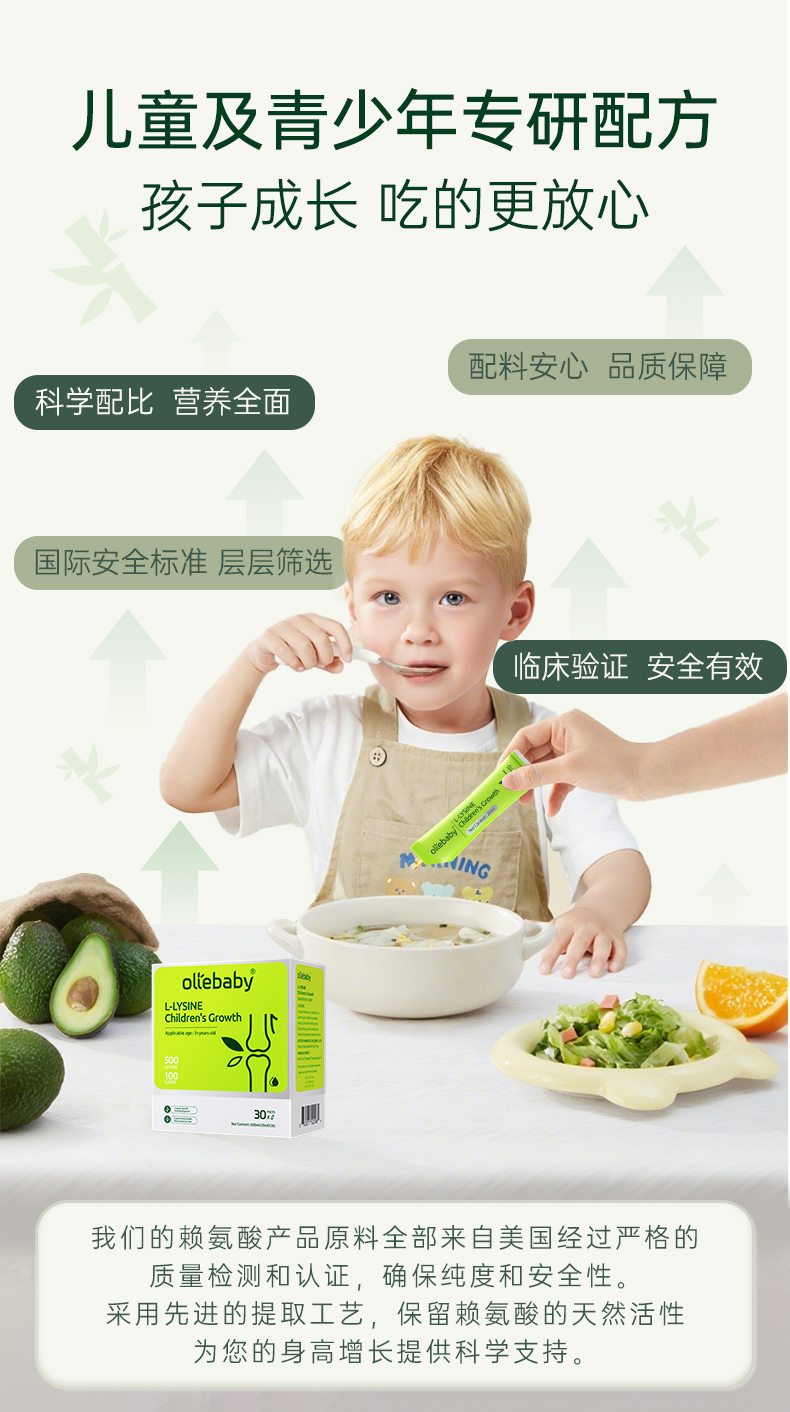 ollebaby【官方直营】美国进口澳立佳赖氨酸高含量500mg儿童成长(30袋/盒)