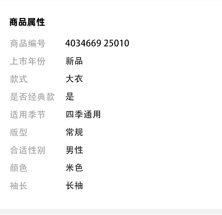 BURBERRY 巴宝莉 男士长款棉质华达呢汽车大衣 米色 4034669 25010