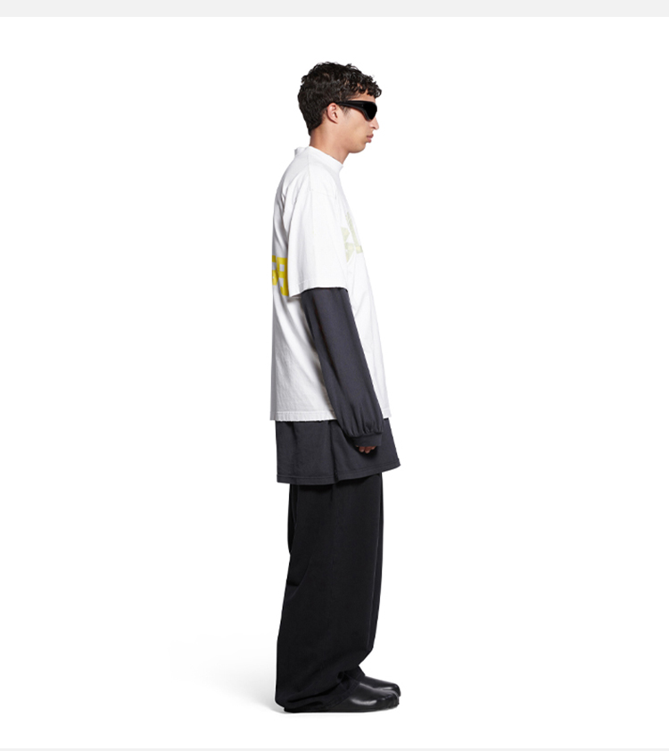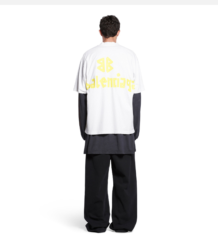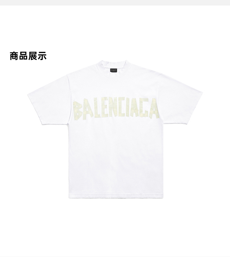 【一】BALENCIAGA 巴黎世家 男士复古平纹针织号贴带型圆领短袖T恤 白色 739784 TOVA9 9000