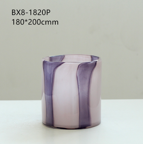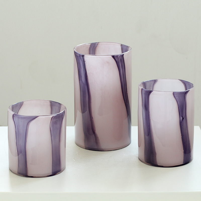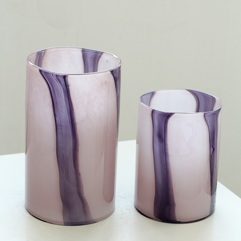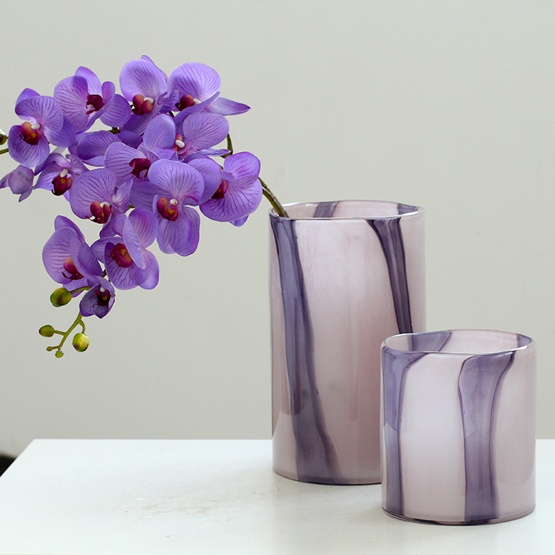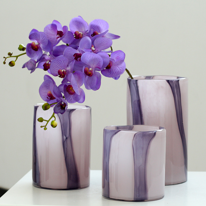 现代简约大口直筒梦幻紫条纹吹制花瓶水培干花蝴蝶兰插花桌面装饰