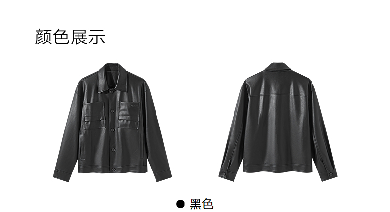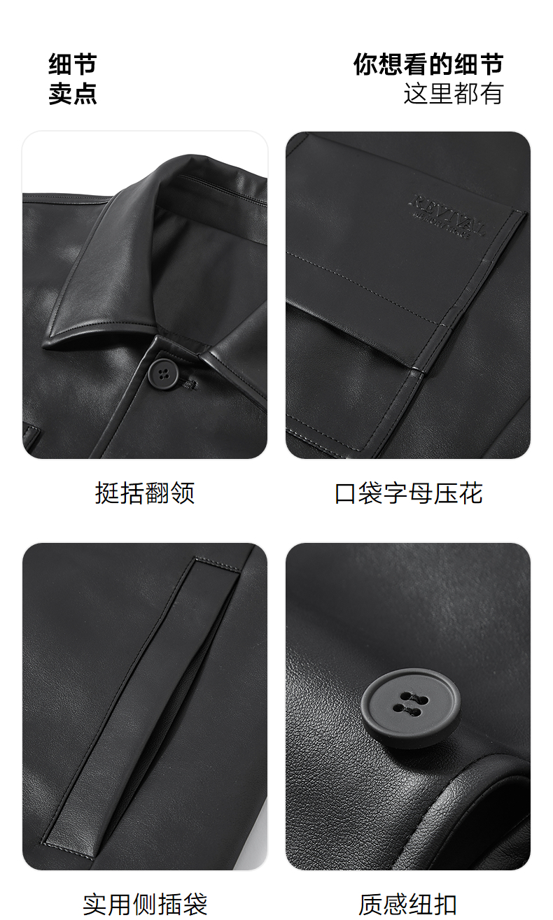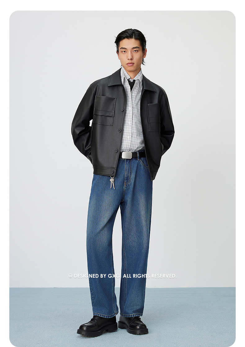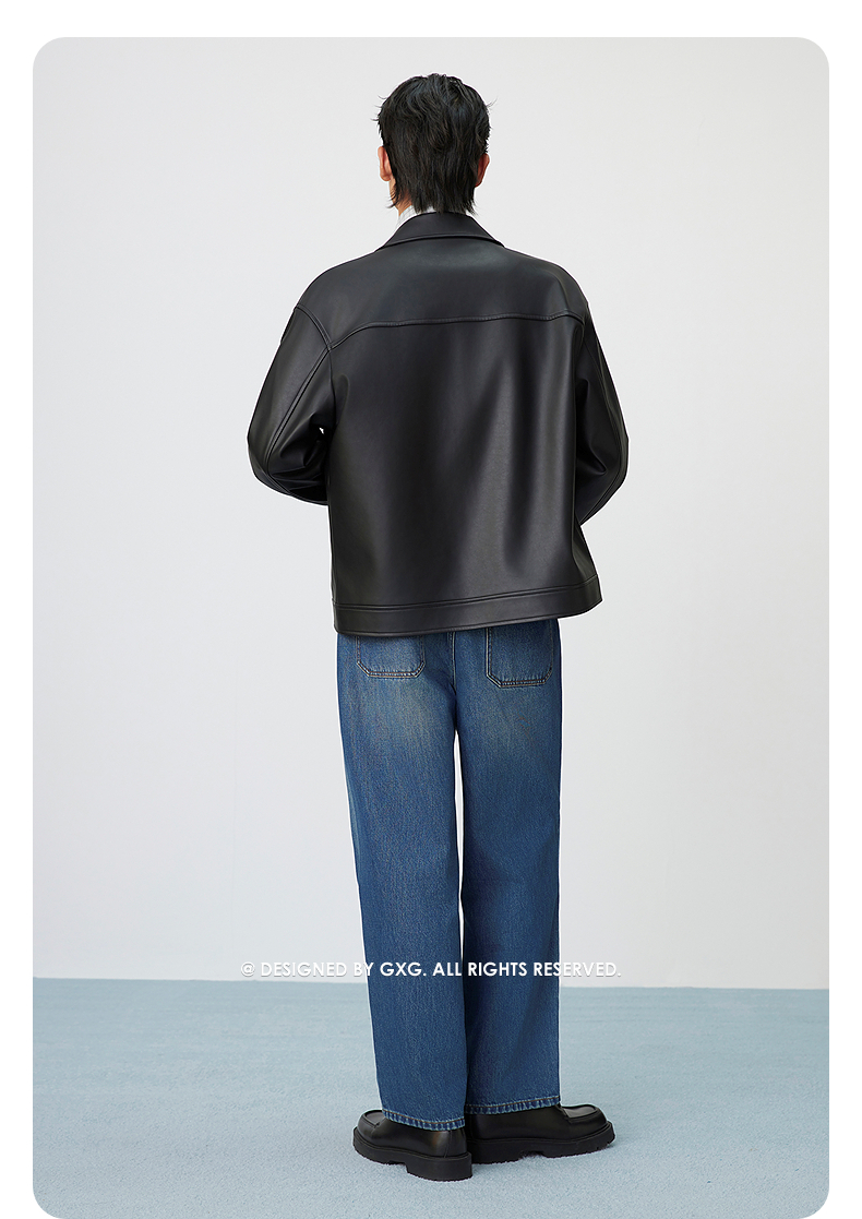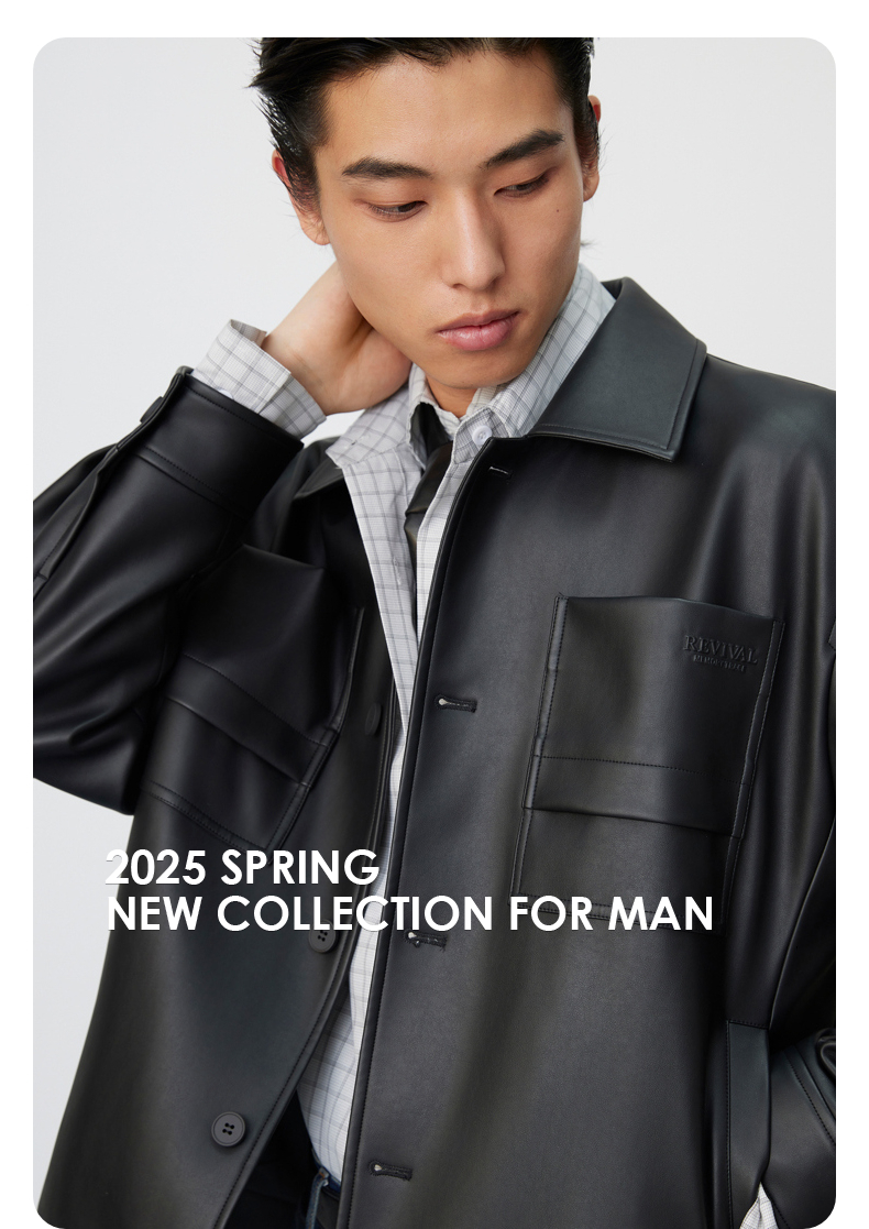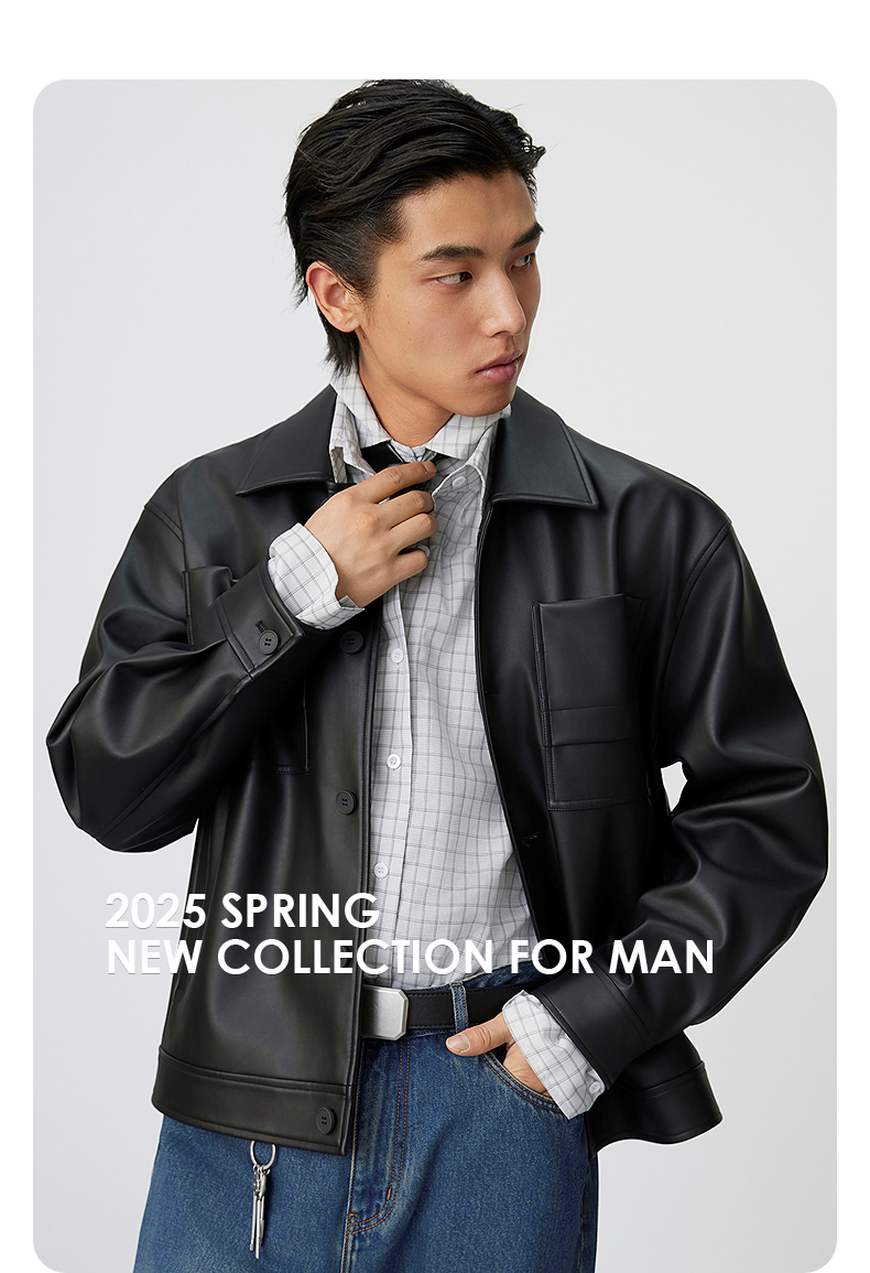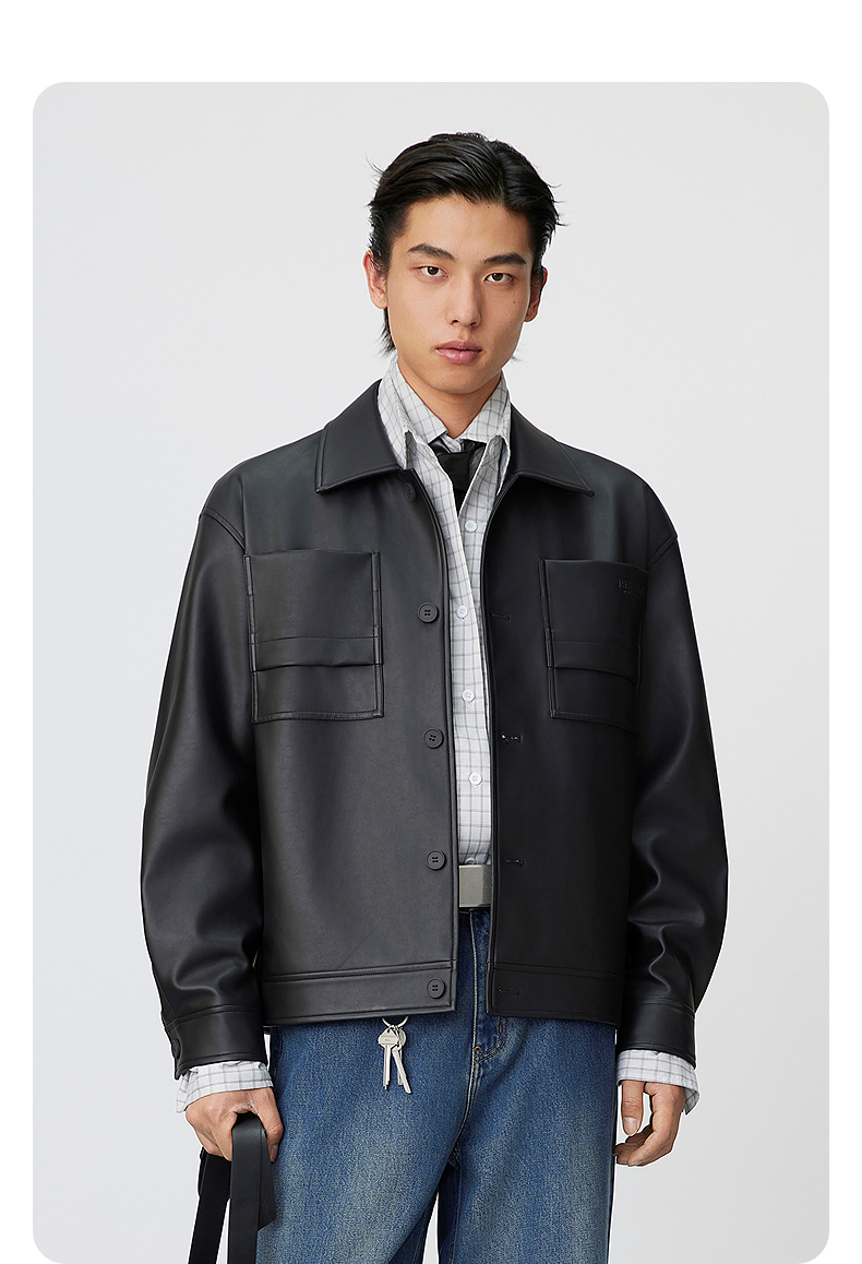 GXG男装 复古PU皮口袋压花简约时尚潮流翻领夹克外套 25年春热卖
