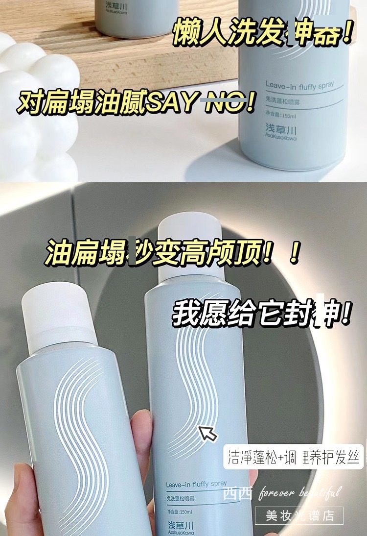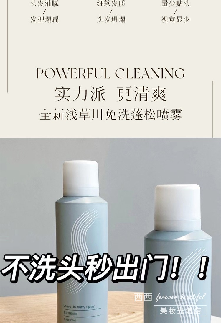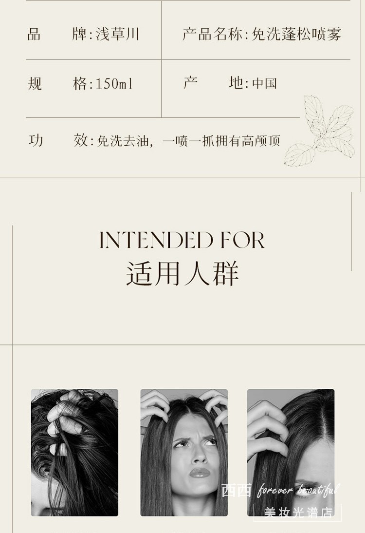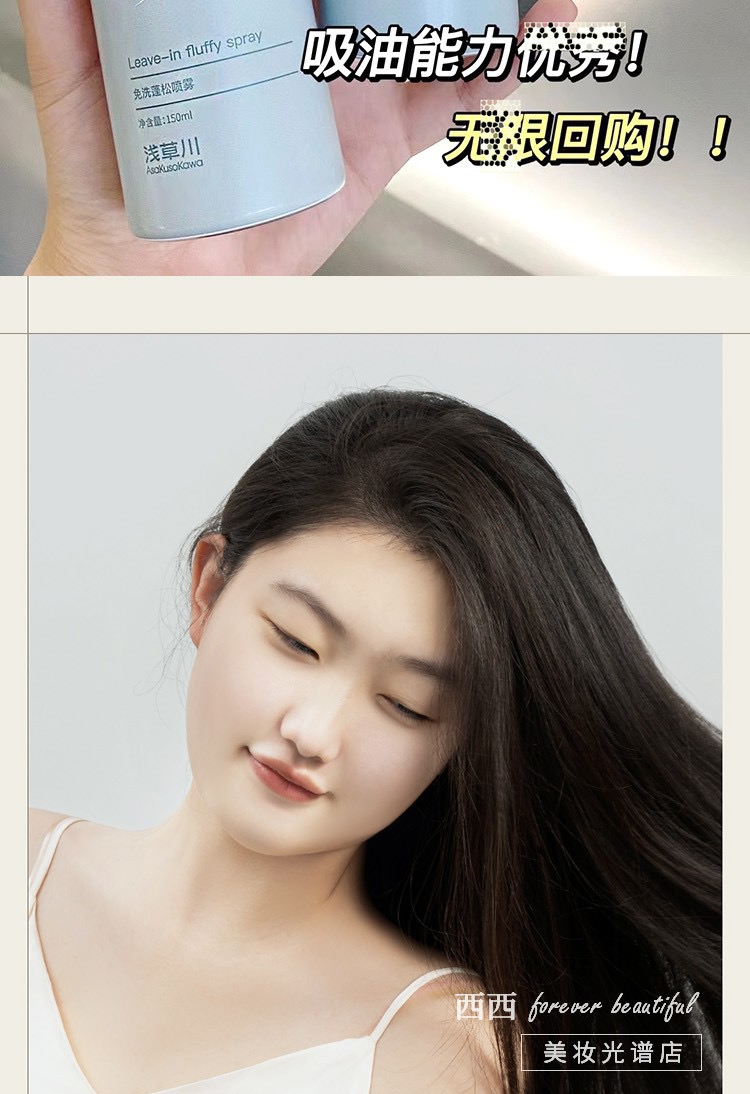 【品牌直发】浅草川免洗干发喷雾150ml 蓬松头顶油头救星不留白屑