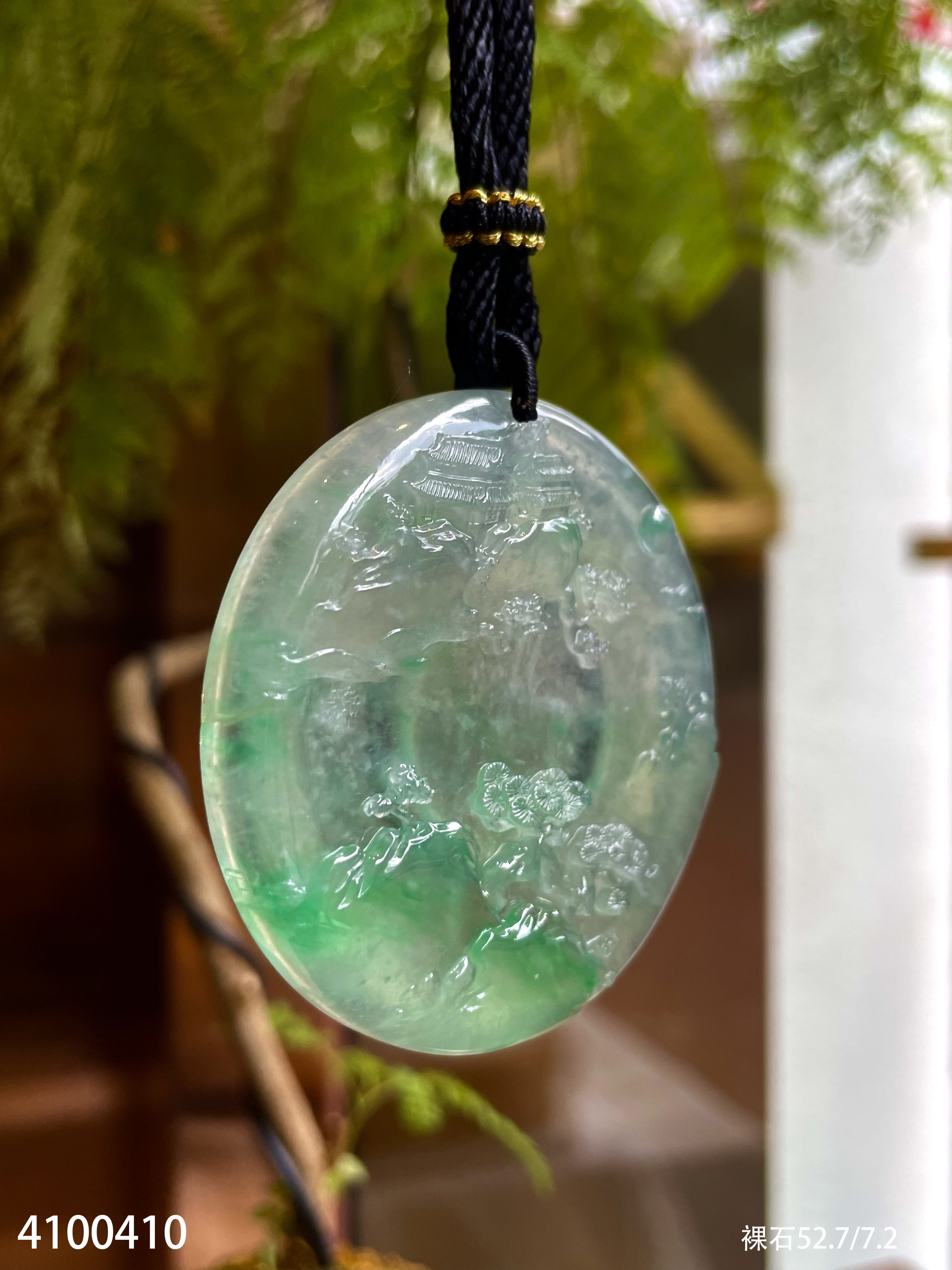 近玻璃种飘翠山水牌【4100410】具体价格微信咨询