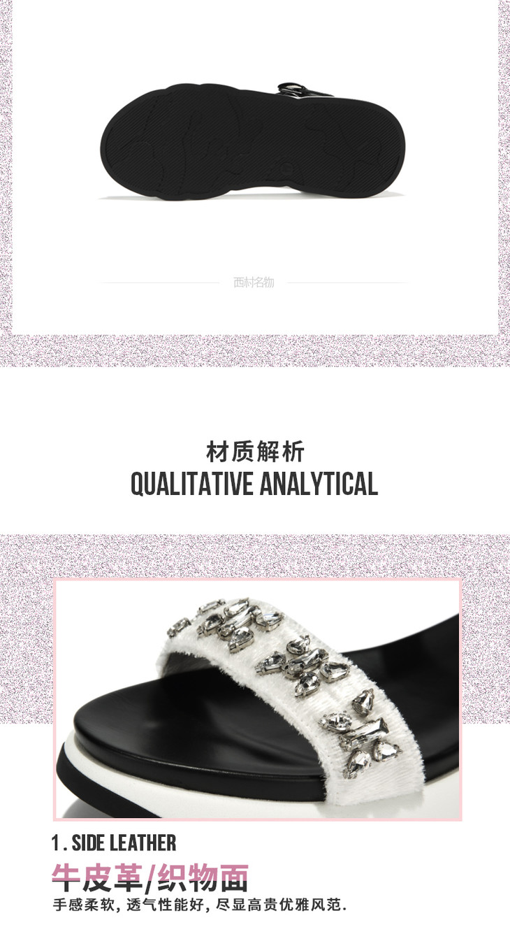 西村名物水钻厚底一字带运动风凉鞋X282G21161