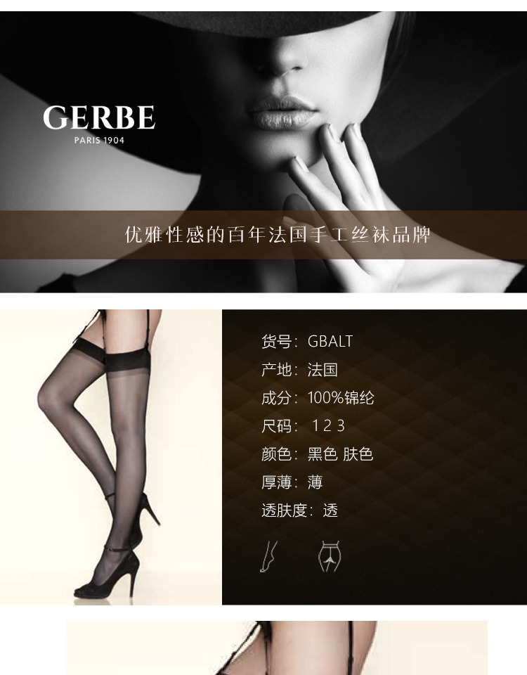 Gerbe格伯 100%法国原装进口女士丝袜大腿袜 GBALT 20d