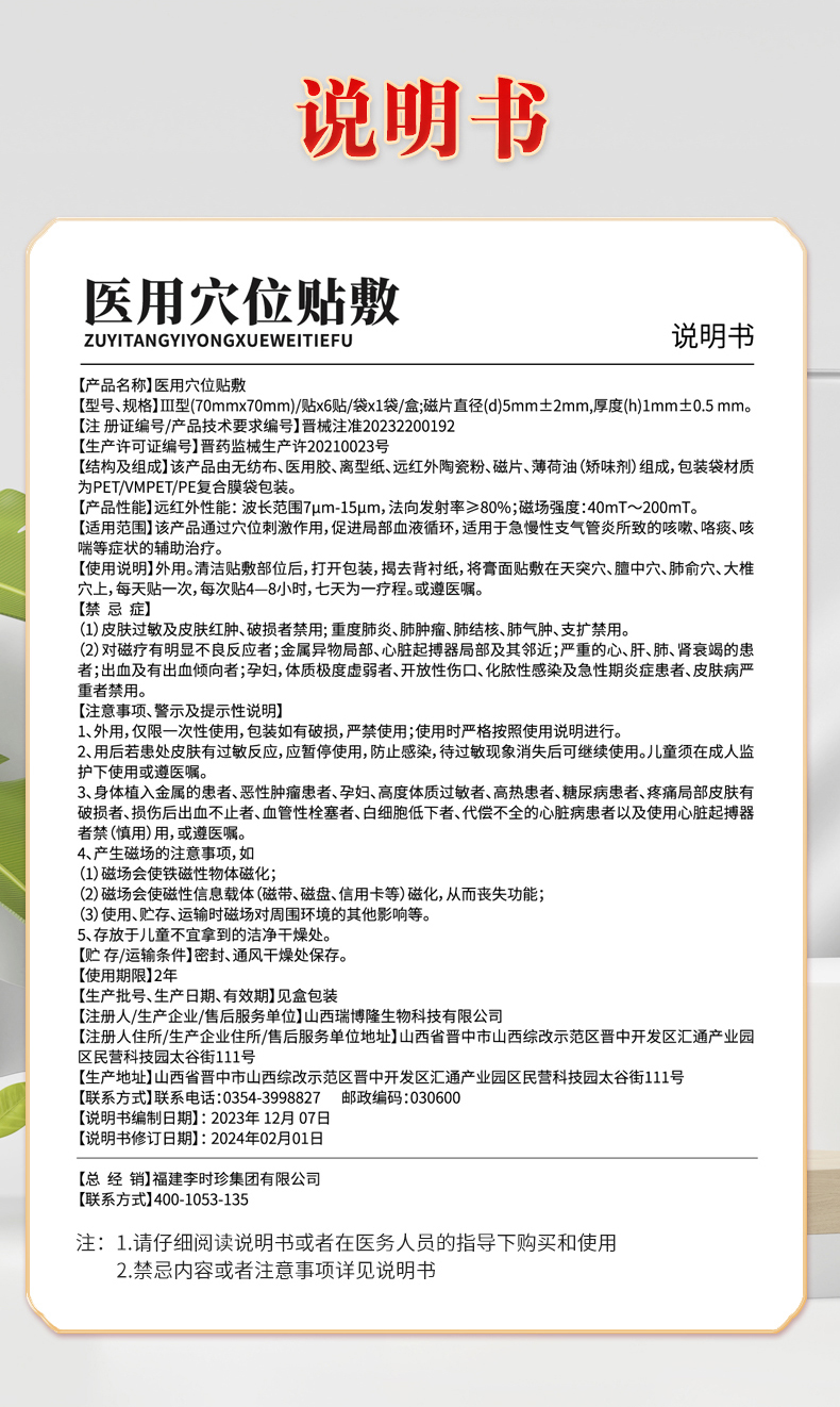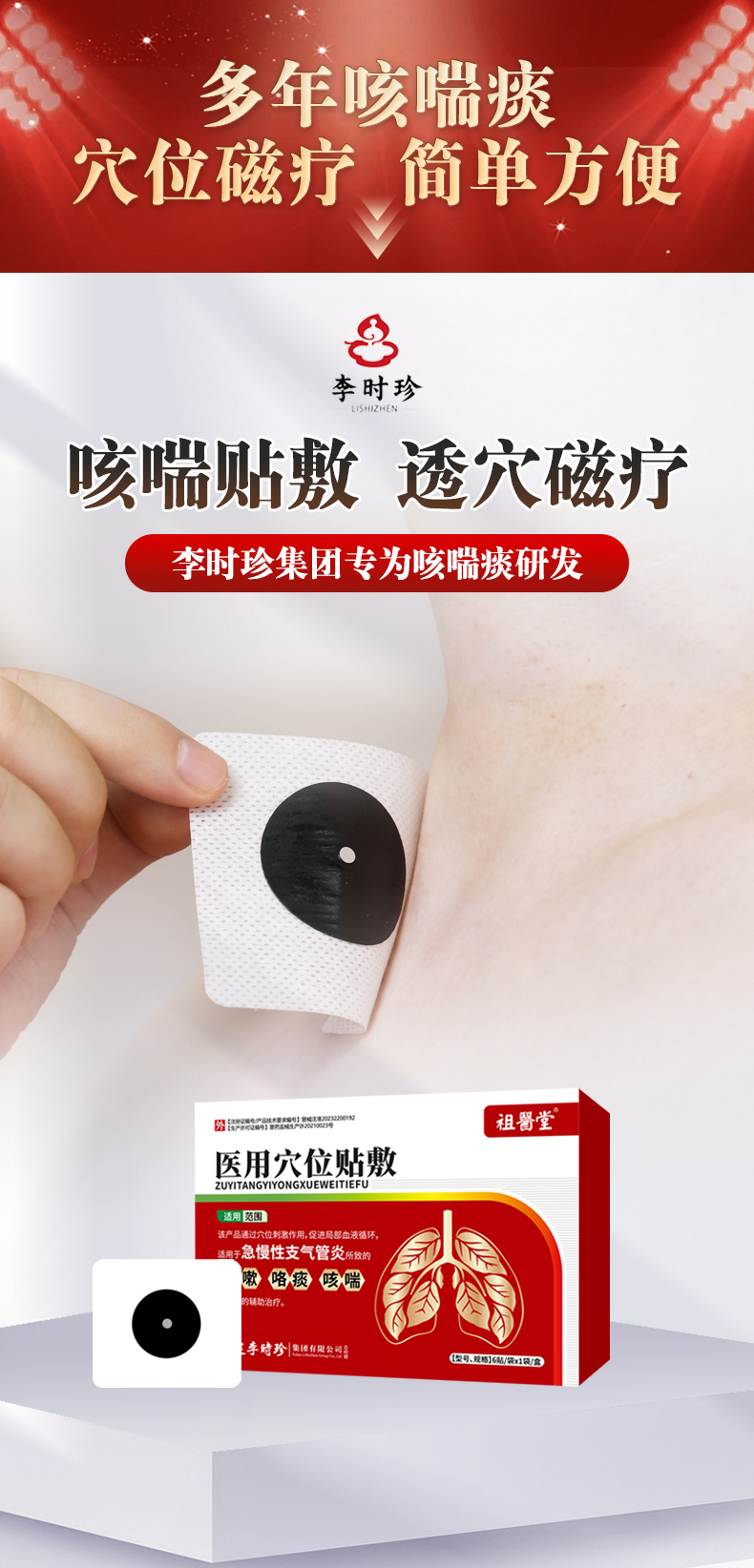 祖医堂医用穴位贴敷(咳嗽)李时珍集团出品 止咳平喘 每天一贴