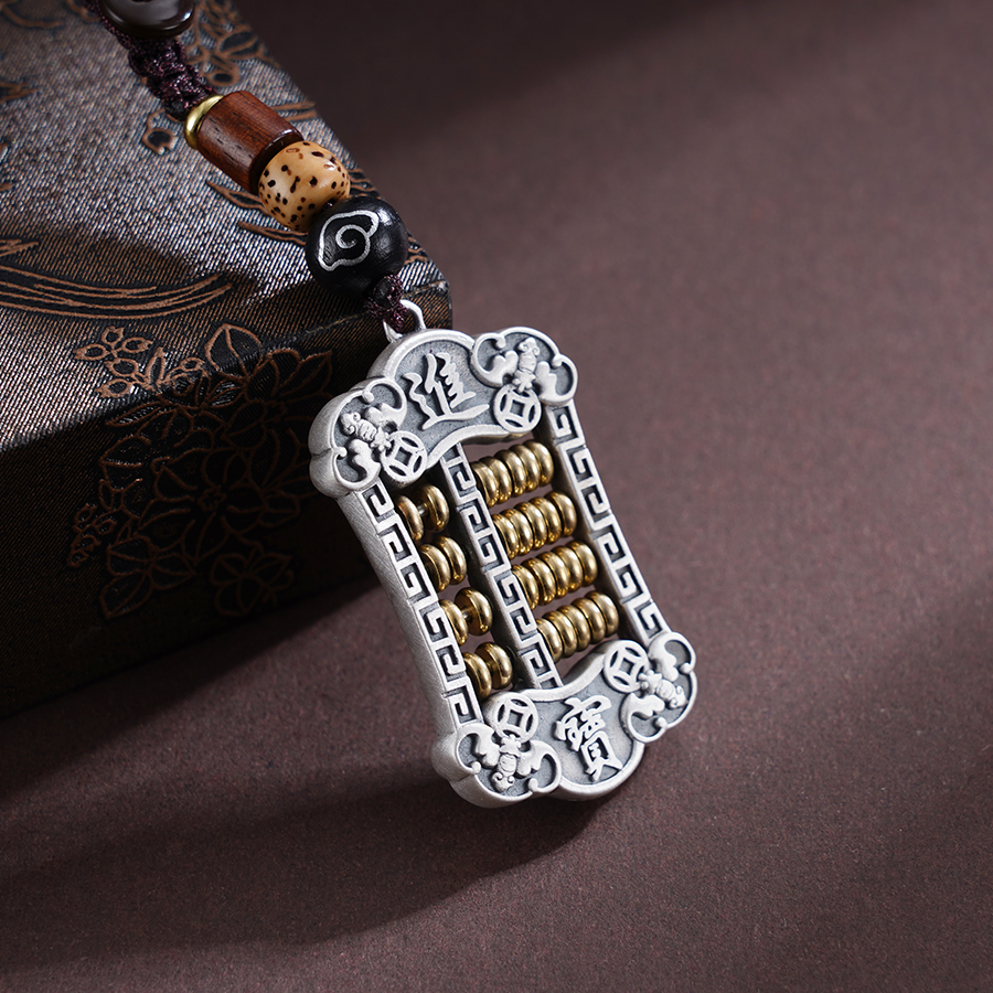 【寓意】:一款设计独特的算盘吊坠,采用古法工艺打造。取“神机妙算”之意,激发佩戴者潜能。寓意增长智慧,消除业障。