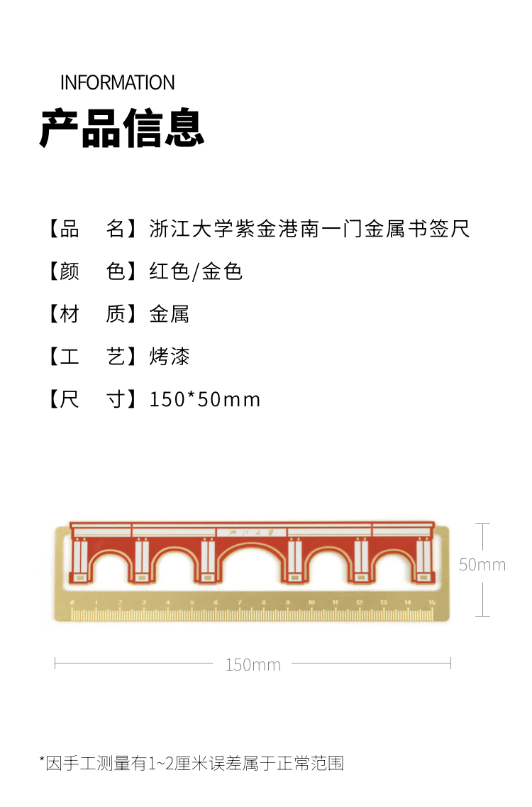 【浙大文创】浙江大学紫金港南一门金属书签尺