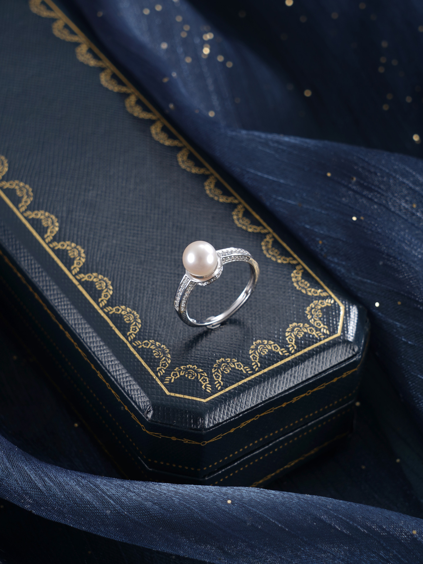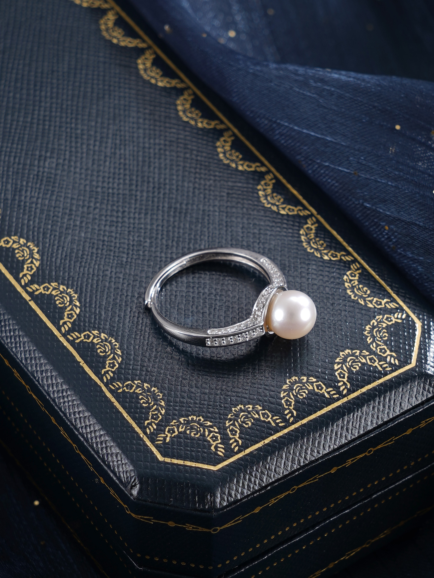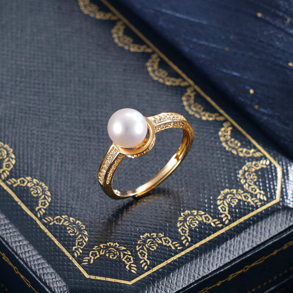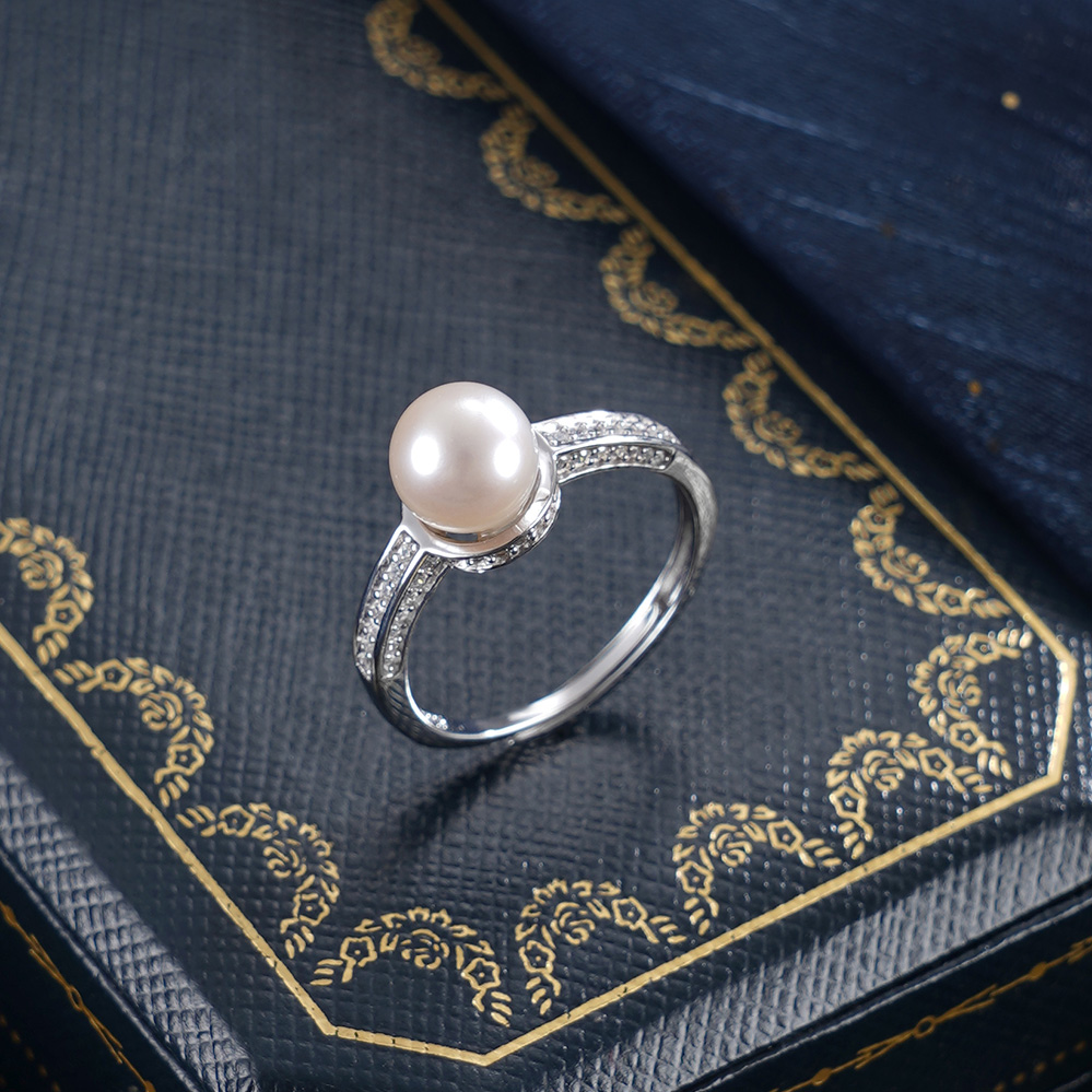 子佩集【银河静界】银S925珍珠惜王妃戒指【R2089】7mm珠双色一字2601