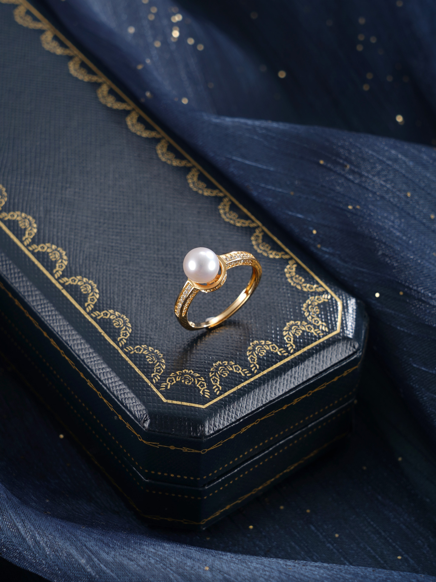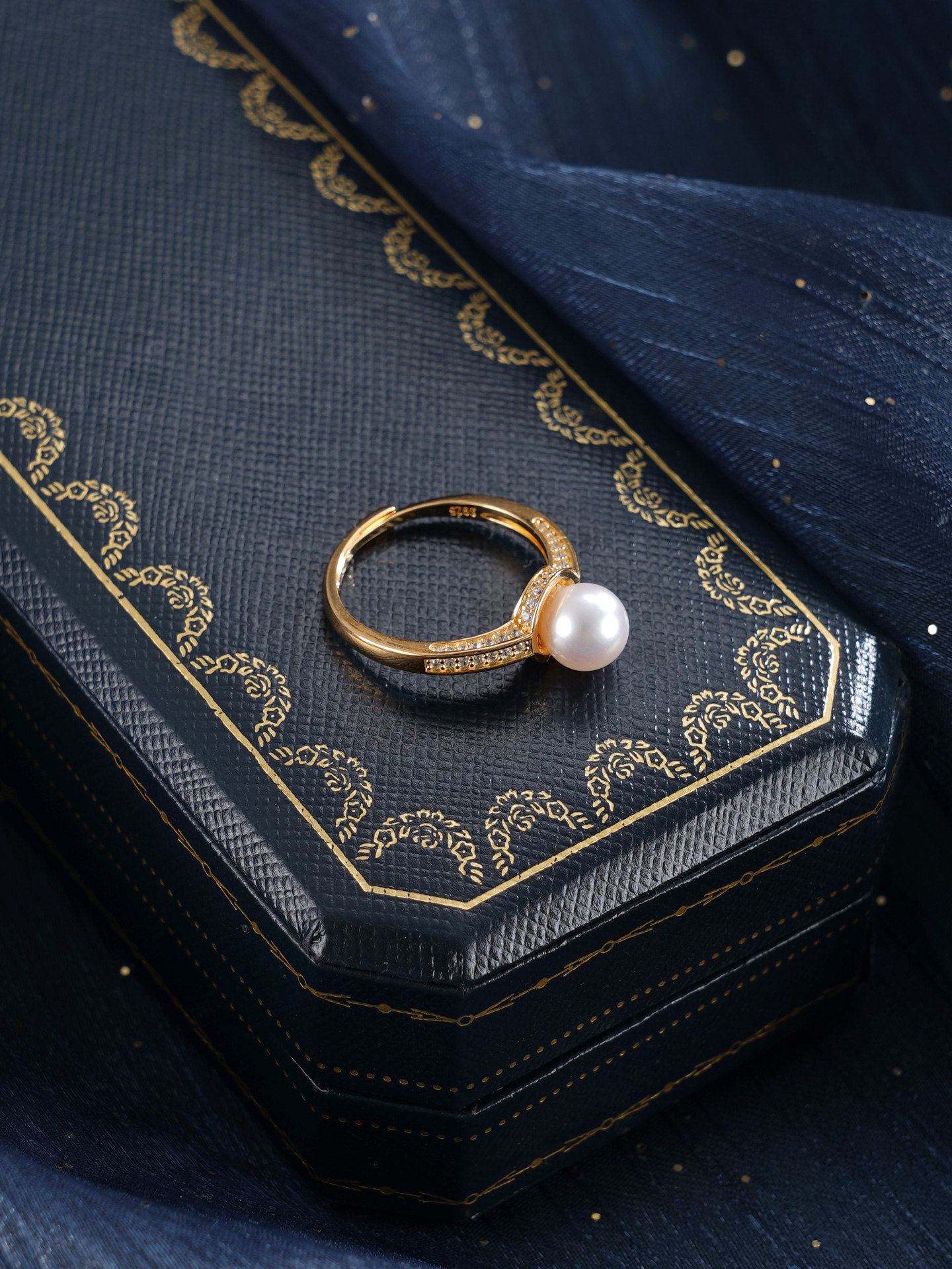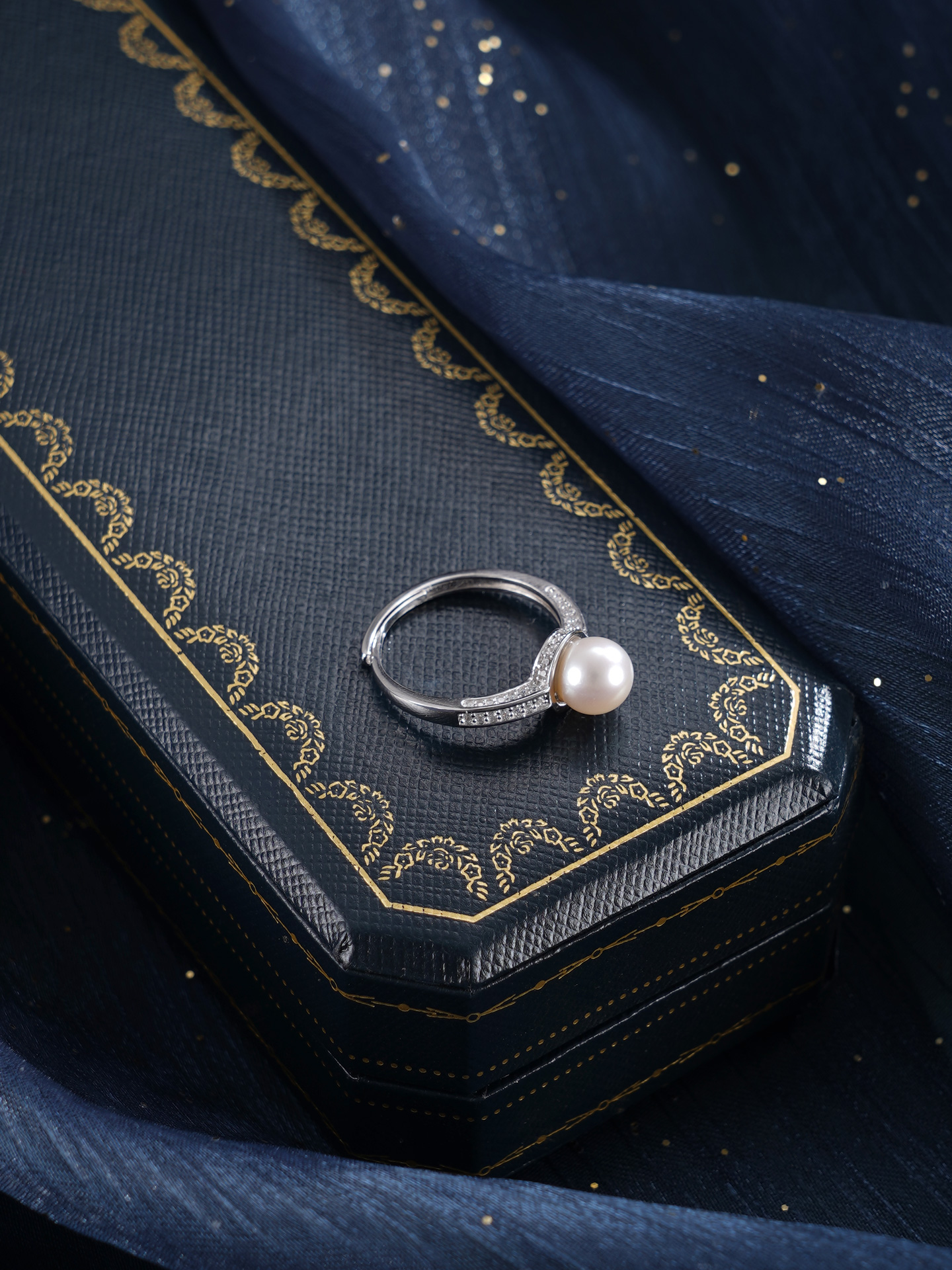 子佩集【银河静界】银S925珍珠惜王妃戒指【R2089】7mm珠双色一字2601