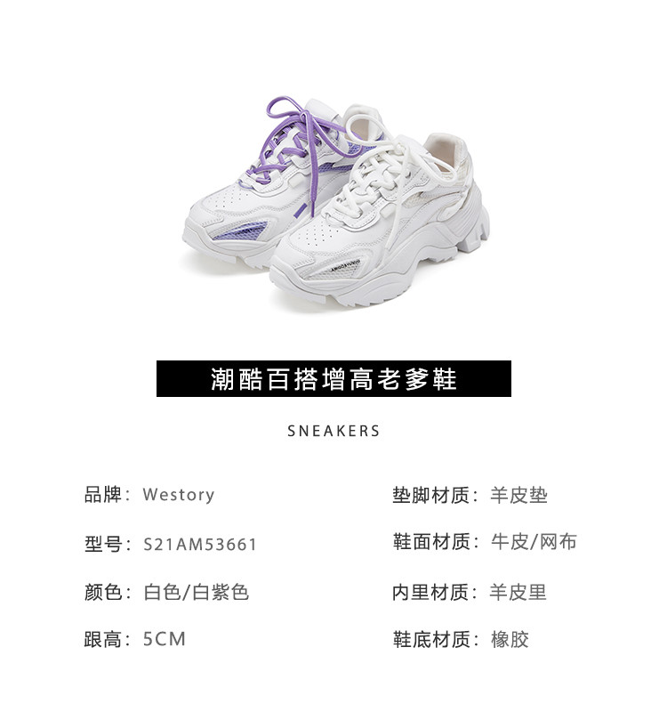 【2021夏季新品】运动休闲ins潮酷百搭舒适增高小白鞋老爹鞋女S21AM53661