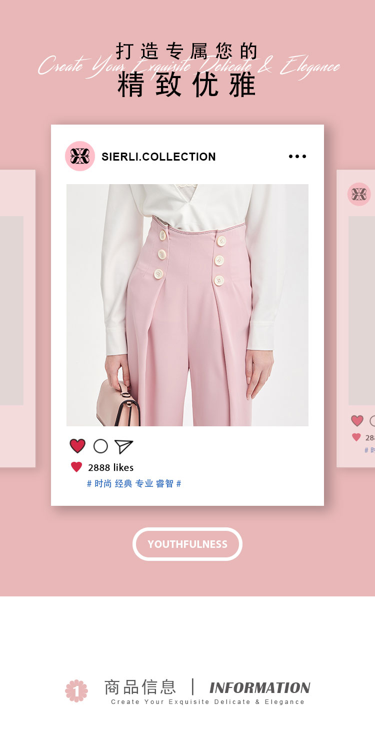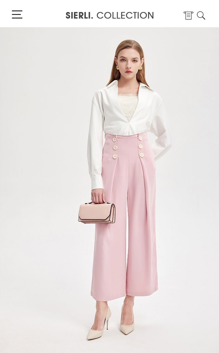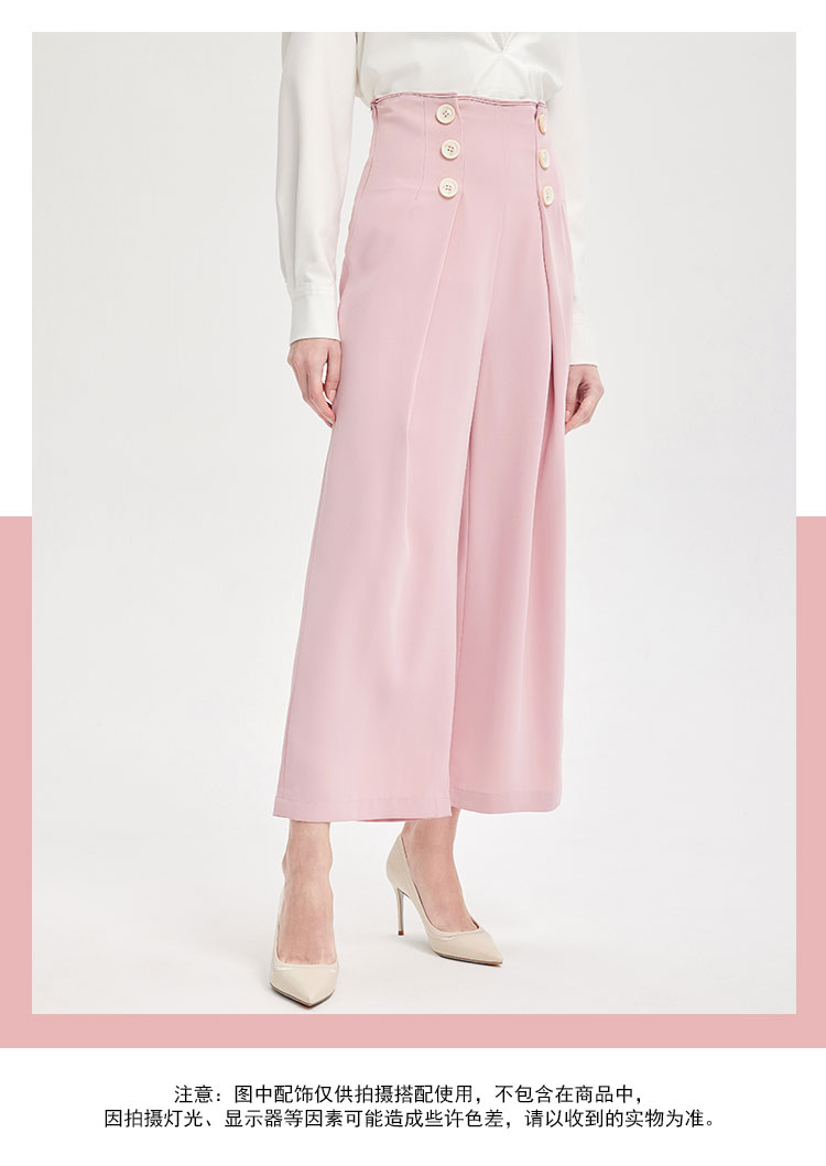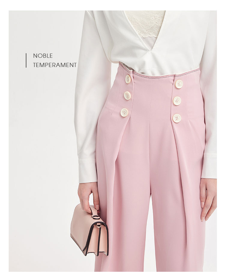 PE3A2瑟俪春季新品双排扣高腰显瘦阔腿裤