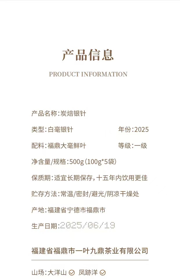 福鼎白茶 | 2025年 一叶九鼎 一级 炭焙银针 500g/盒